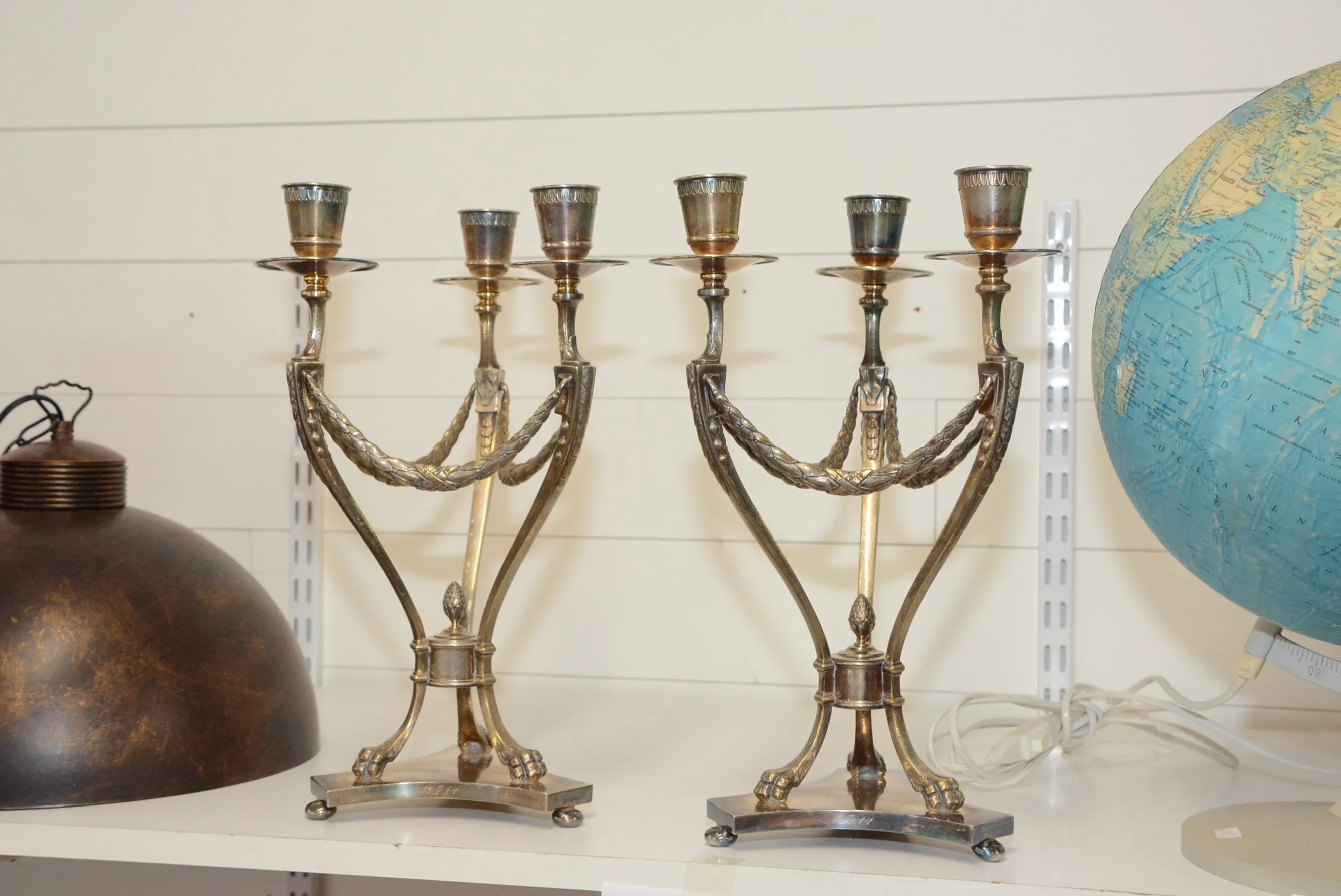 677. Kandelabrar 3-armade nysilver 2 st diam: 20 cm, H: 35 cm