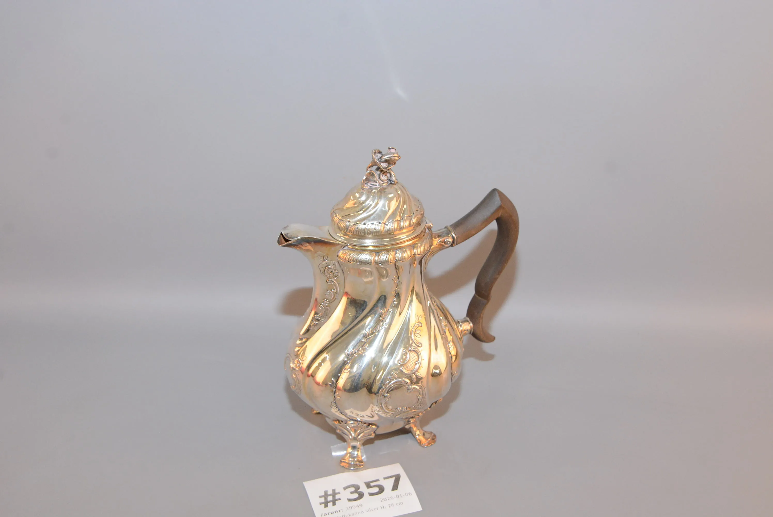 357. Kanna silver H: 26 cm