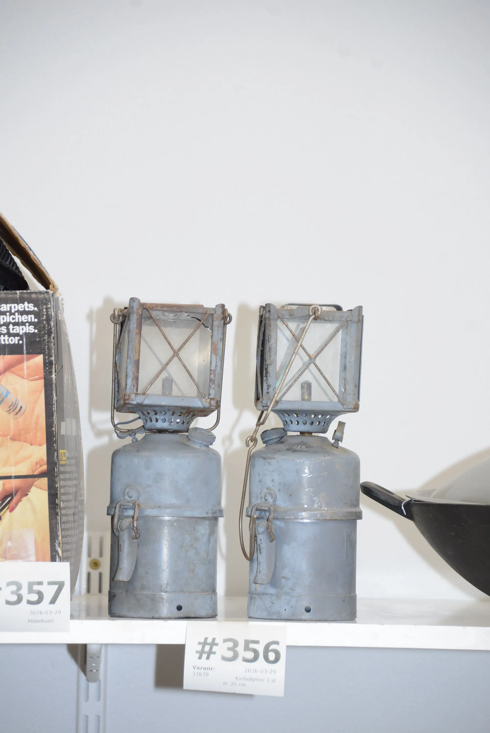 356. Karbidlyktor 2 st H: 25 cm