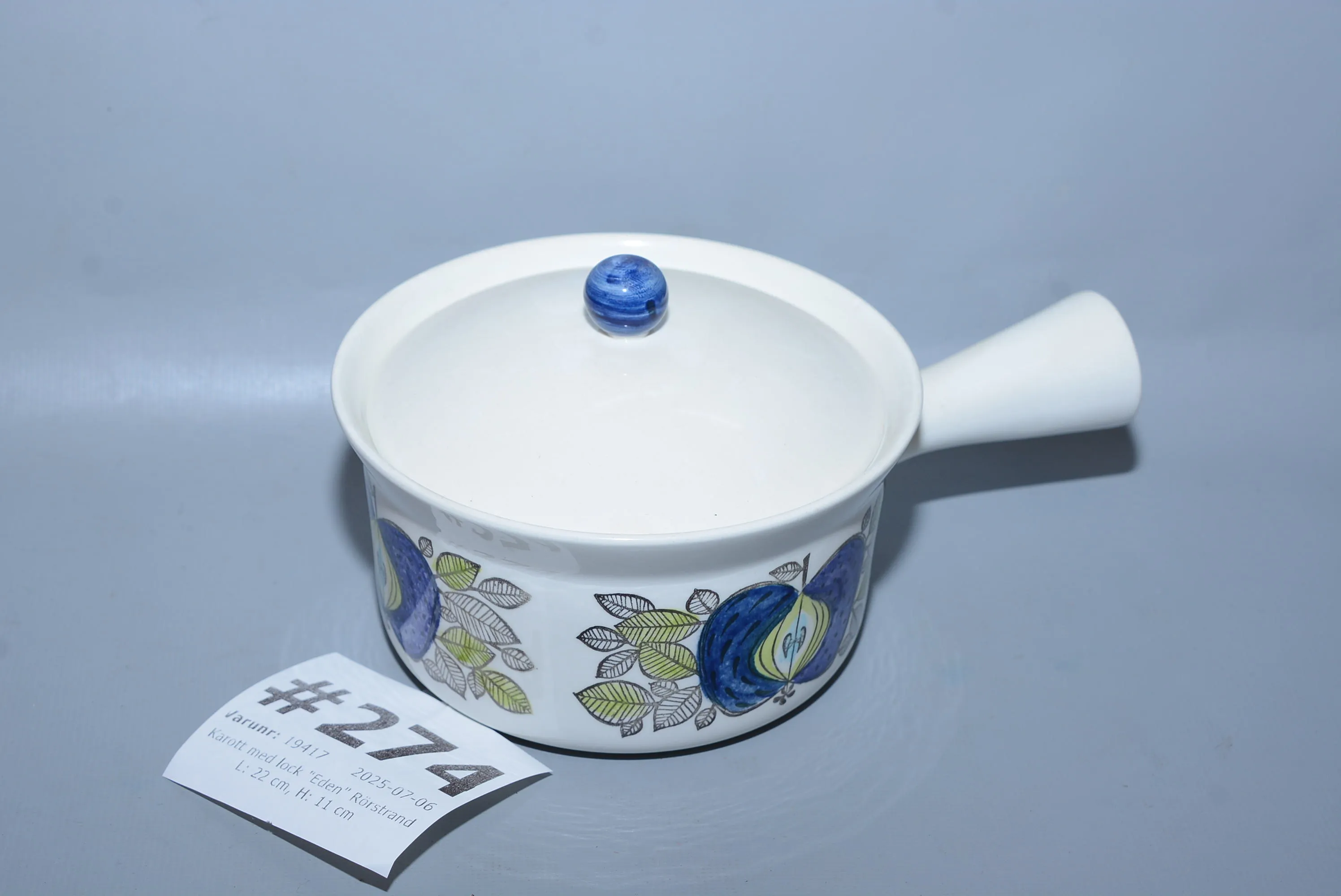 274. Karott med lock "Eden" Rörstrand L: 22 cm, H: 11 cm