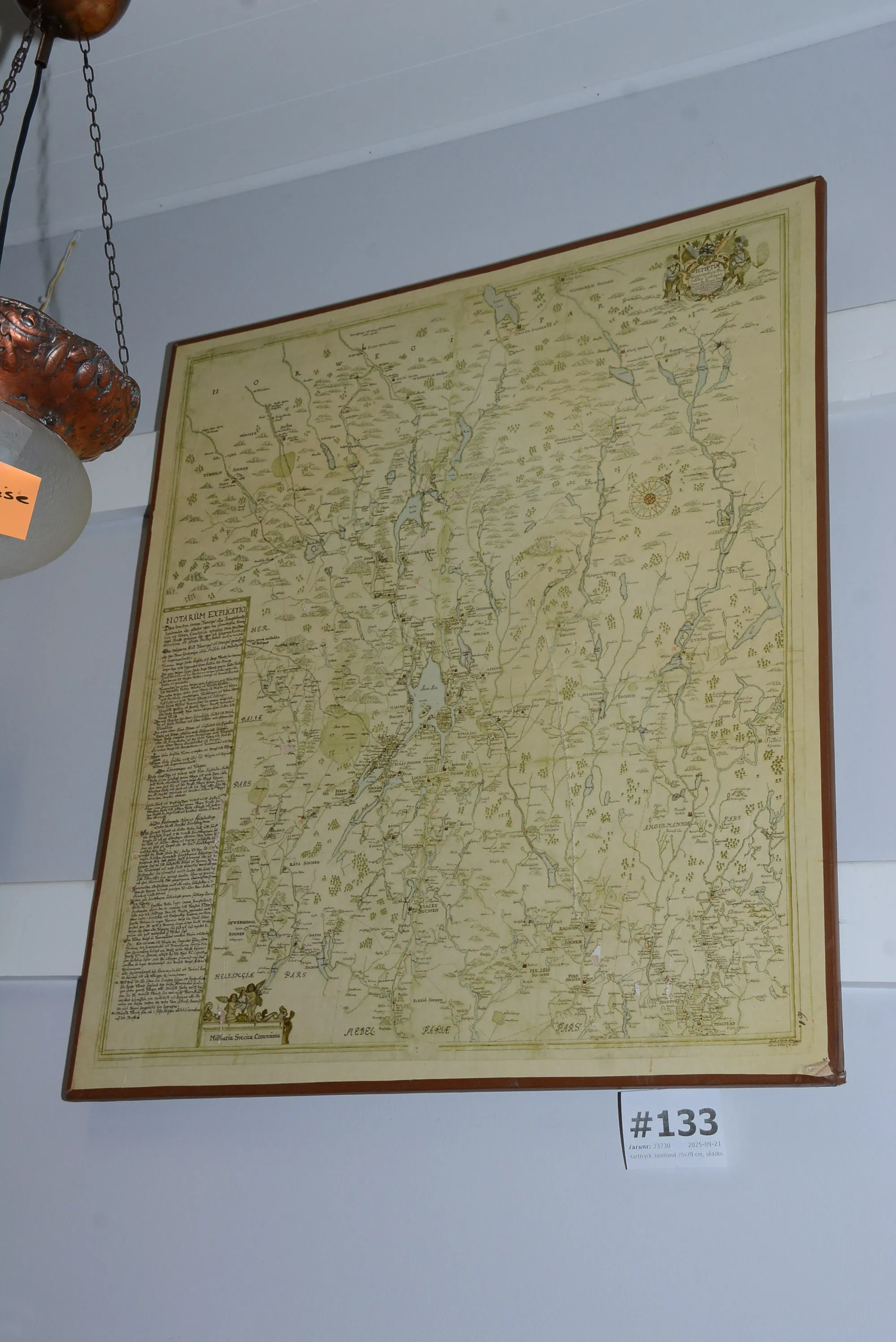 133. Karttryck Jämtland 75x70 cm, skador