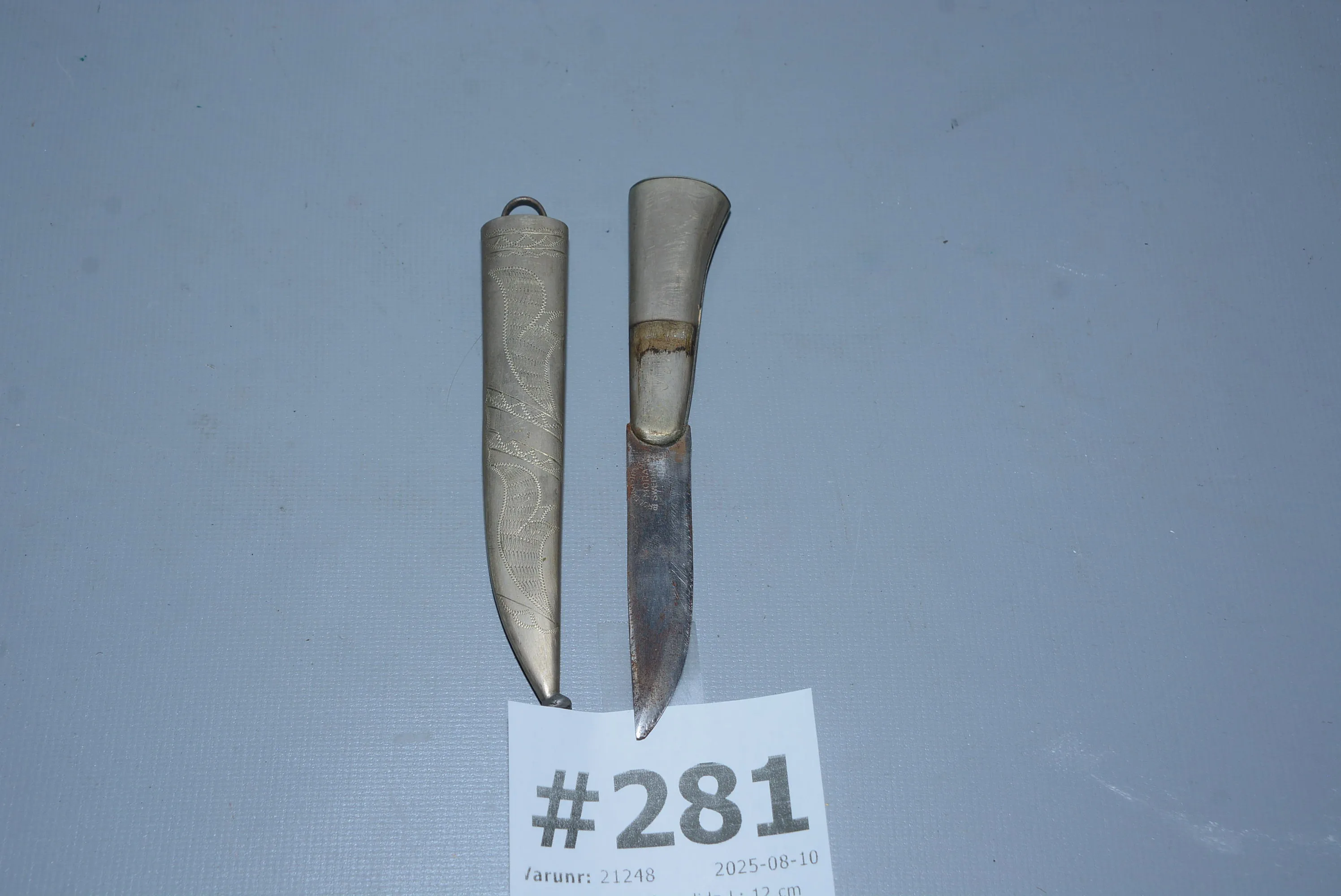 281. Kniv inkl nysilverslida L: 12 cm