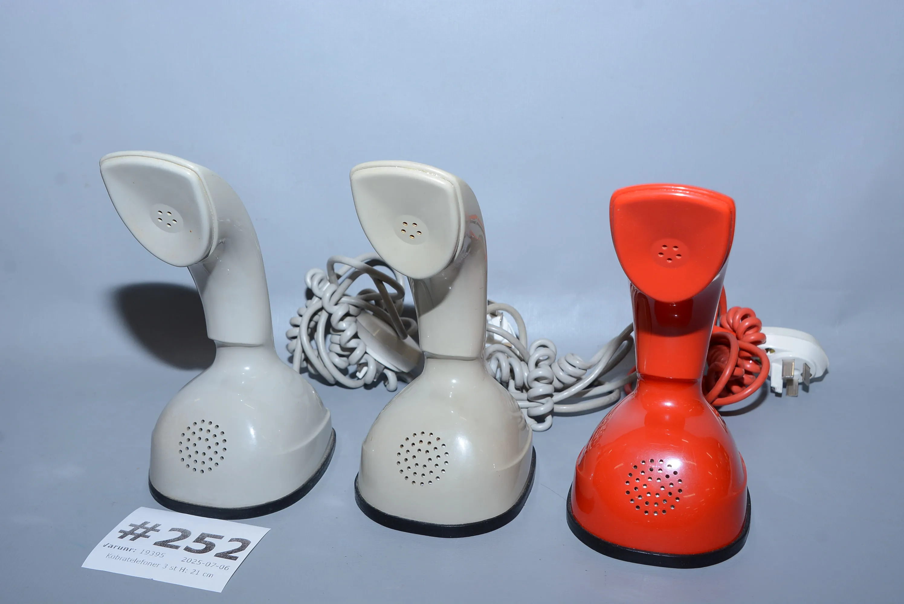 252. Kobratelefoner 3 st H: 21 cm