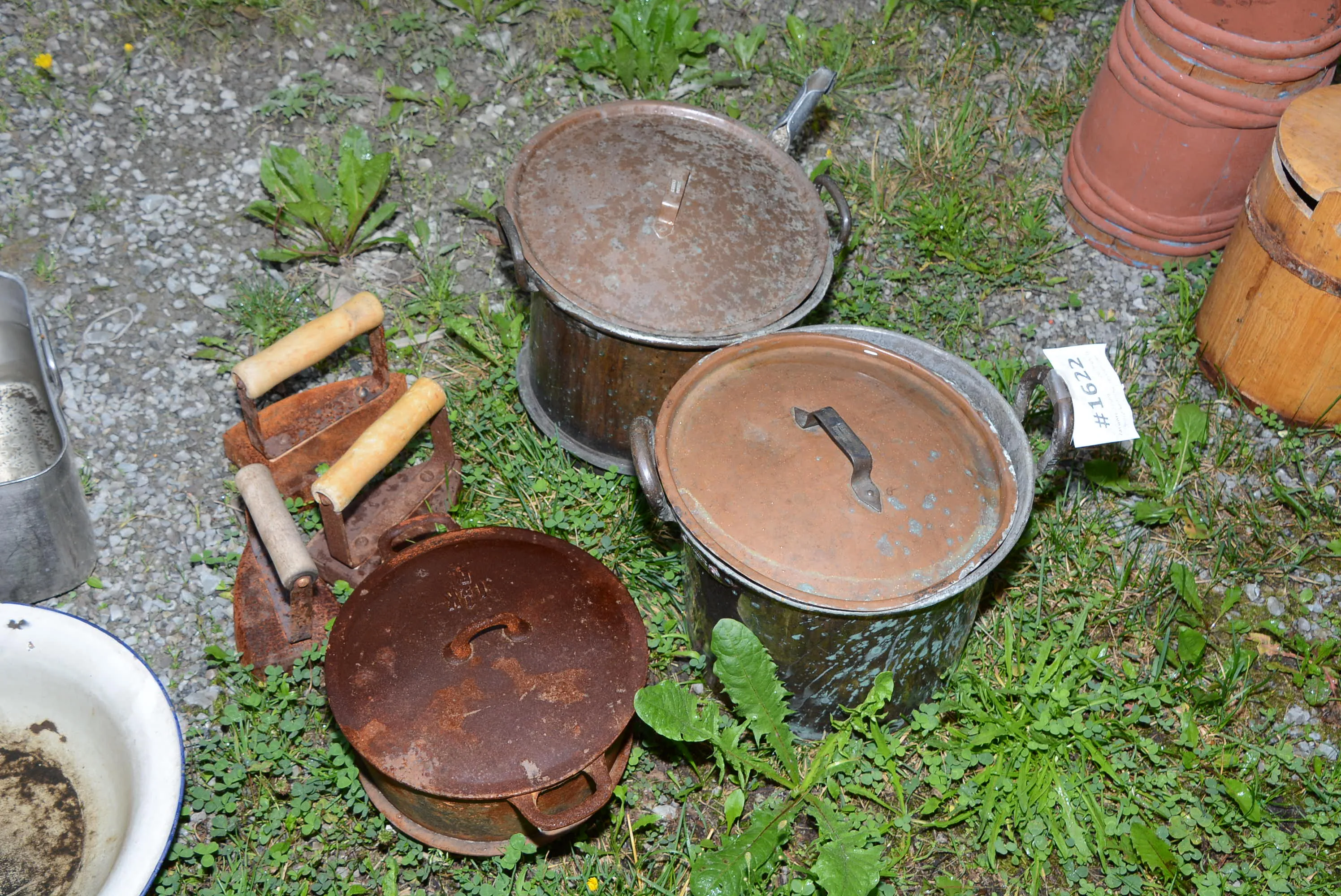 1622. Kopparkastruller, strykjärn mm