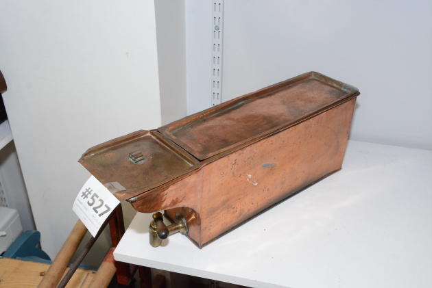 527. Kopparvattenvärmare med kran L: 55 cm
