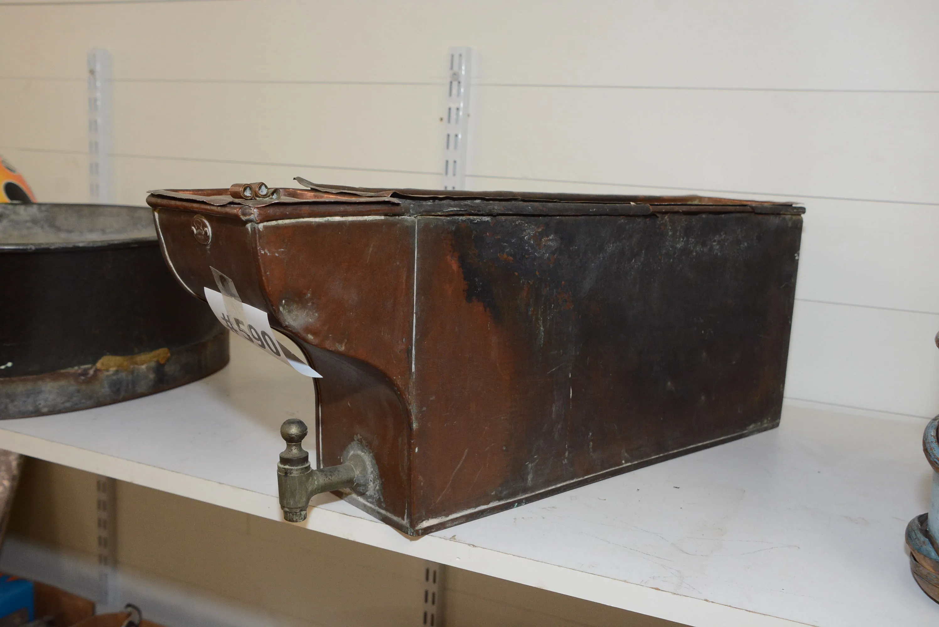 590. Kopparvattenvärmare med kran L: 65 cm