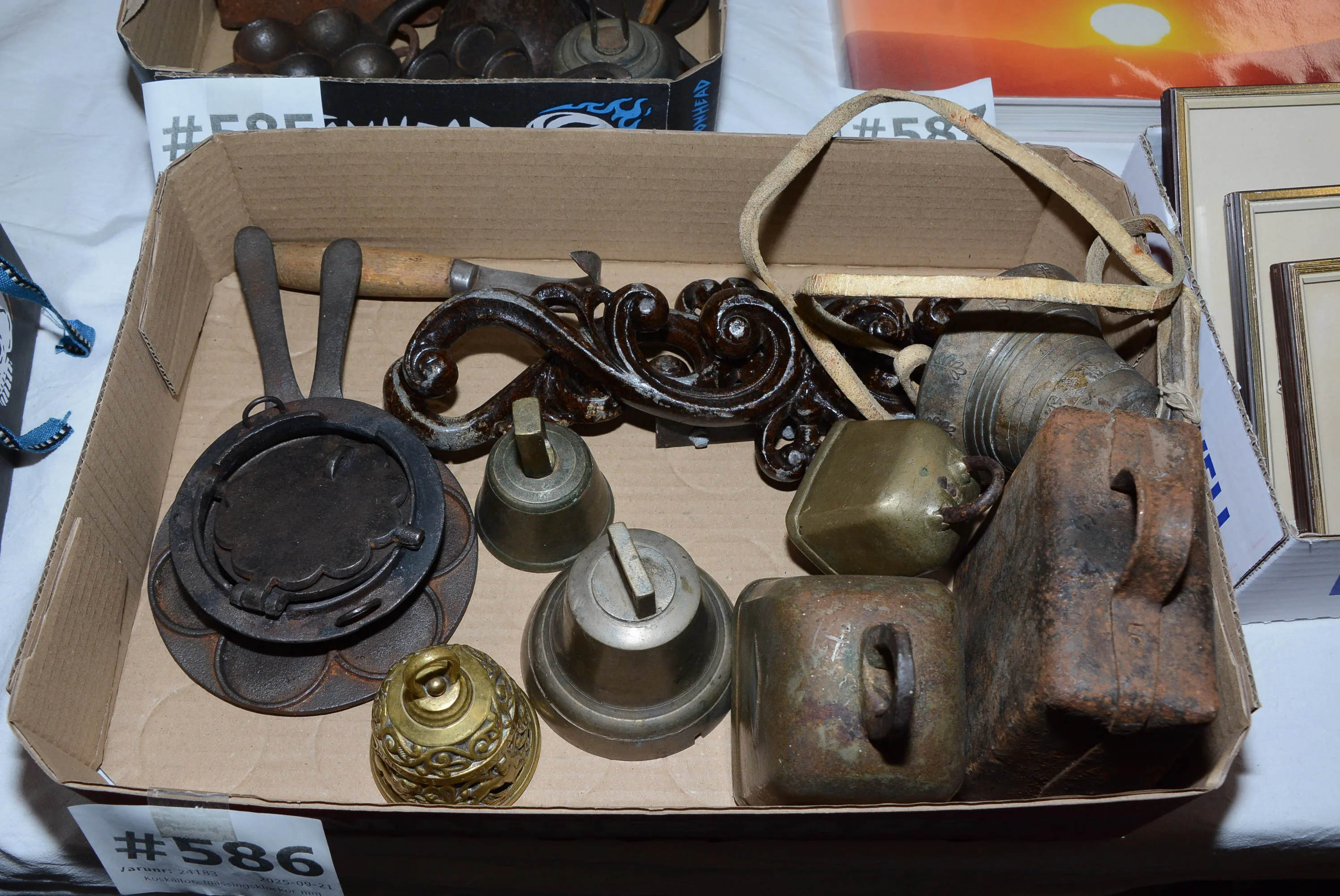 586. Koskällor, mässingsklockor mm