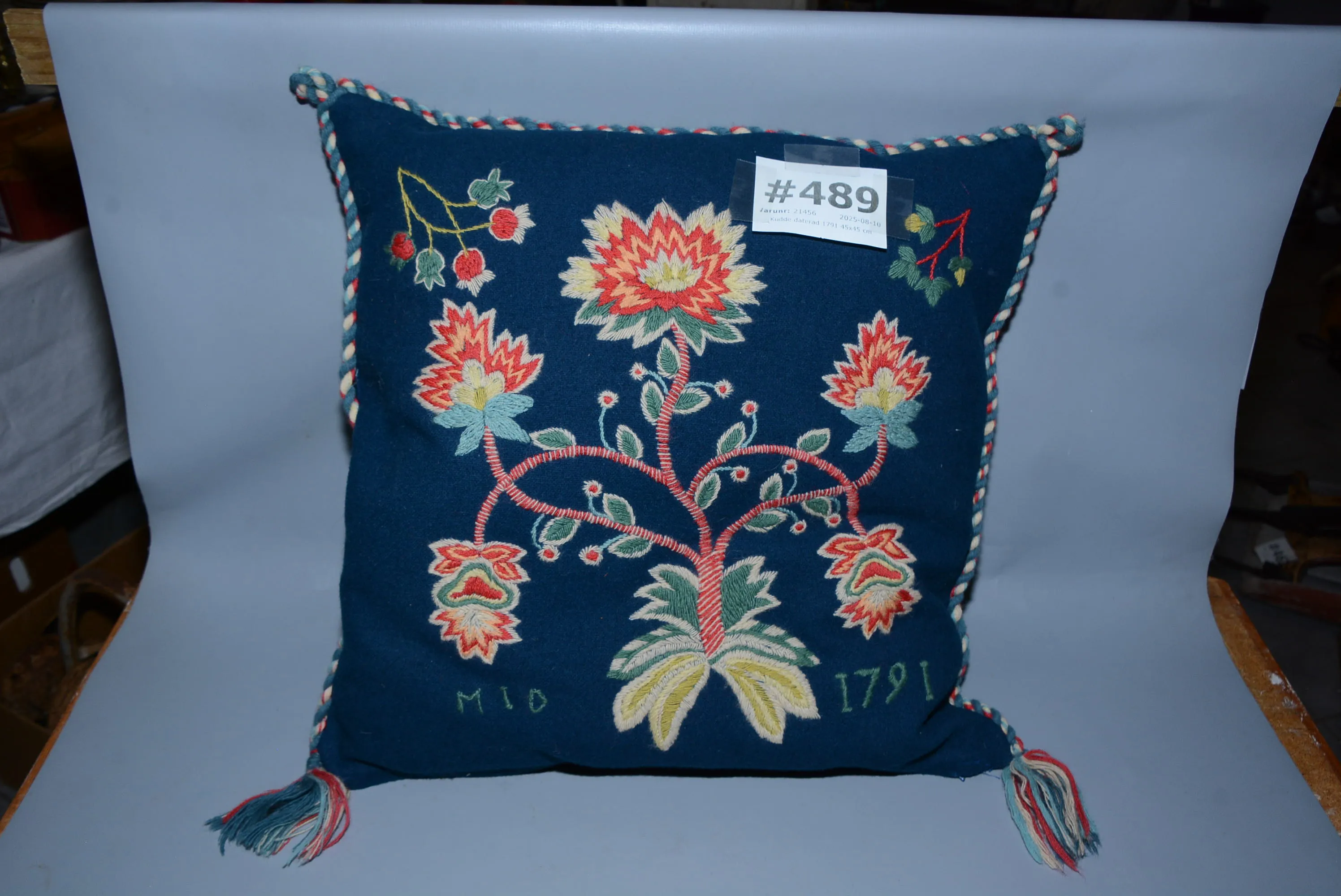 489. Kudde daterad 1791 45x45 cm