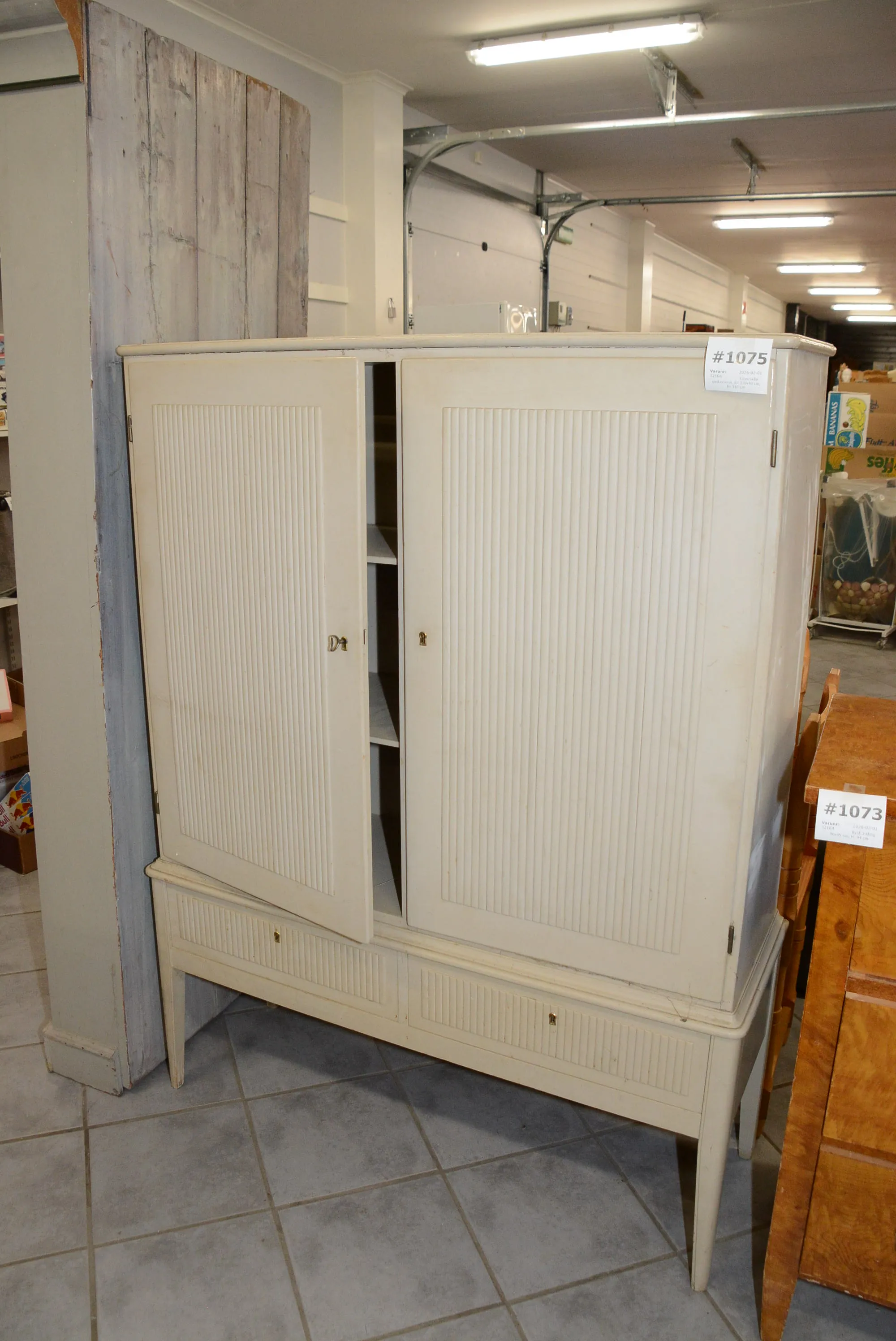 1075. Linneskåp gustaviansk stil 110x40 cm, H: 147 cm