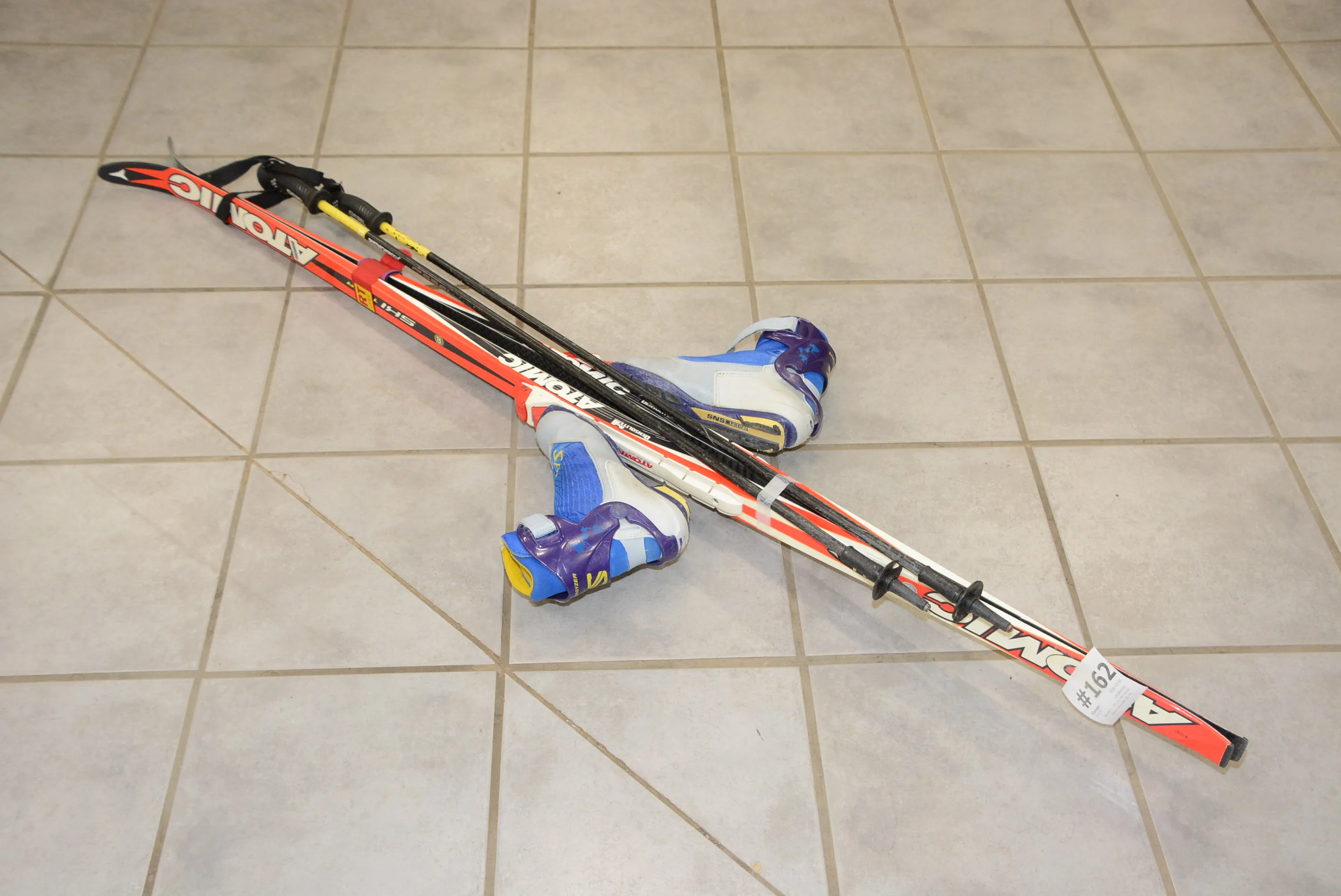 162. Längdskidor Atomic L: 170 cm inkl stavar, pjäxor yttermått 22 cm