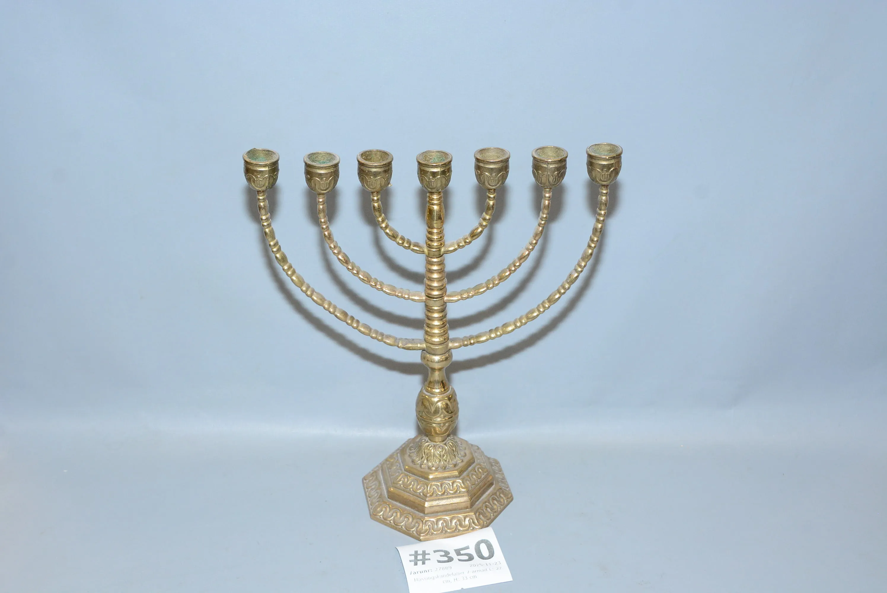 350. Mässingskandelaber 7-armad L: 27 cm, H: 33 cm