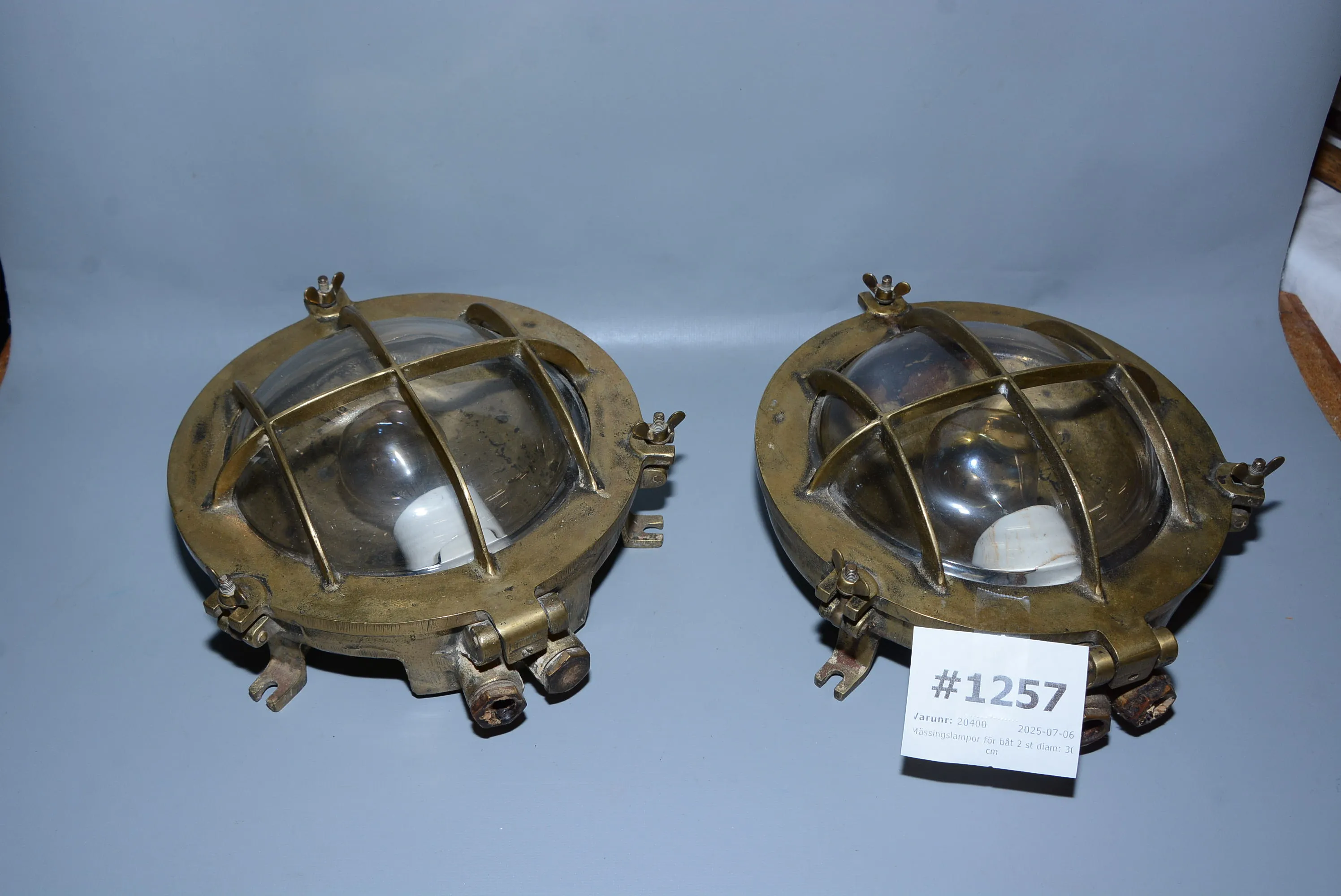 1257. Mässingslampor för båt 2 st diam: 30 cm