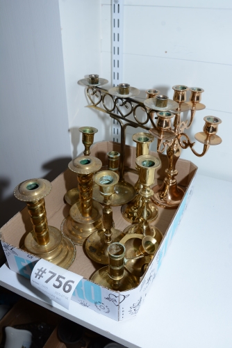 756. Mässingsljusstakar parti