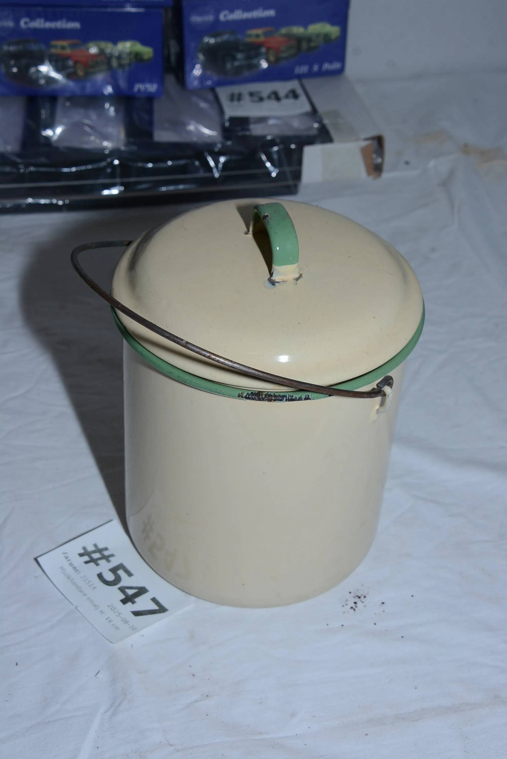 547. Mjölkhämtare emalj H: 18 cm
