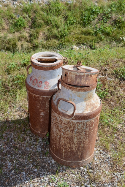 1802. Mjölkkrukor järn 2 st H: 60 cm