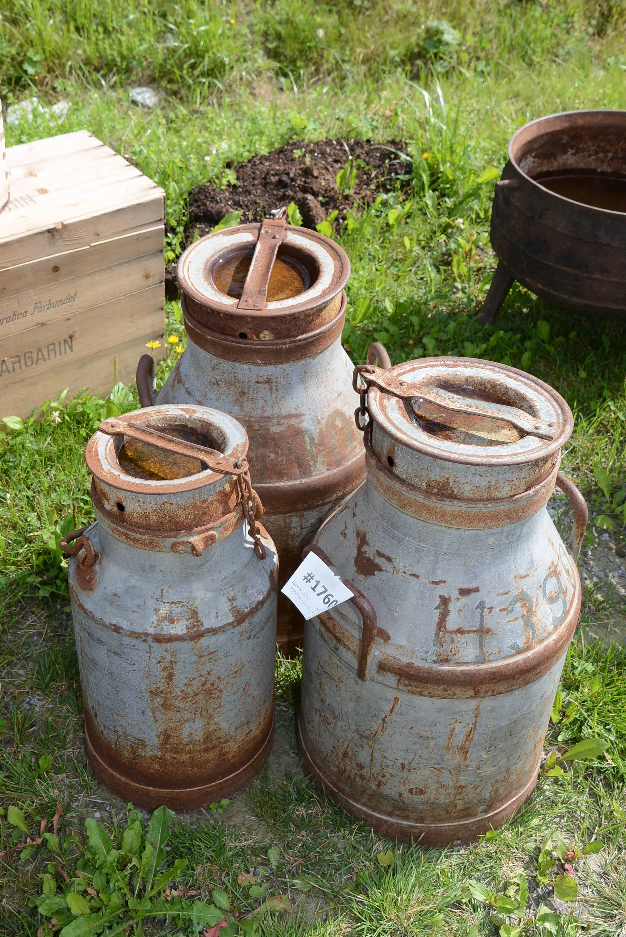 1760. Mjölkkrukor järn 3 st H: 45-53 cm