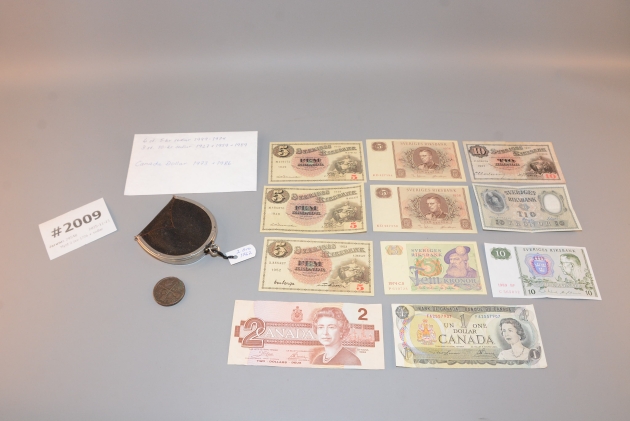 2009. Mynt 2 öre 1776 + sedlar