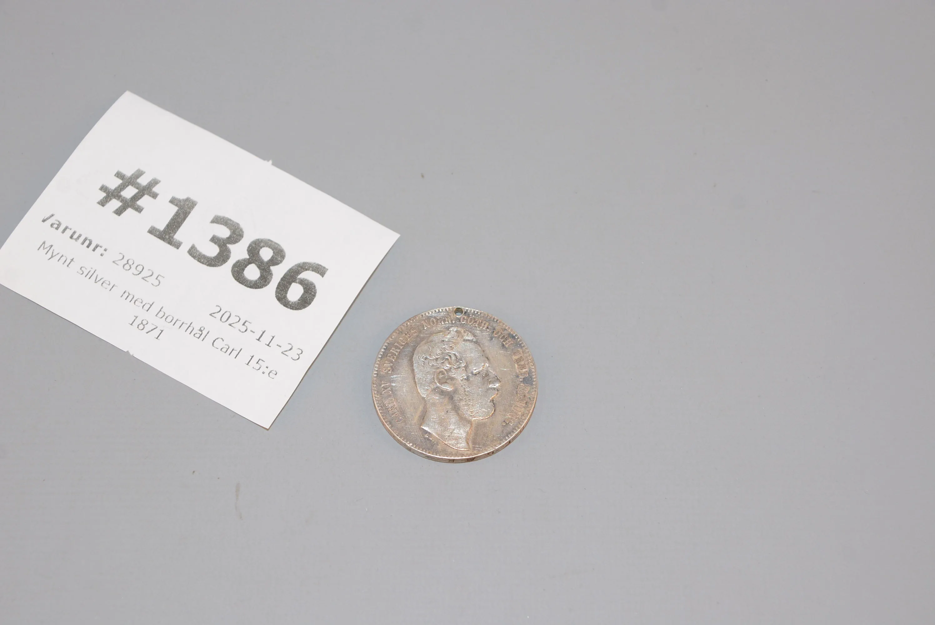 1386. Mynt med hål silver Karl XV 4 riksdaler 1871