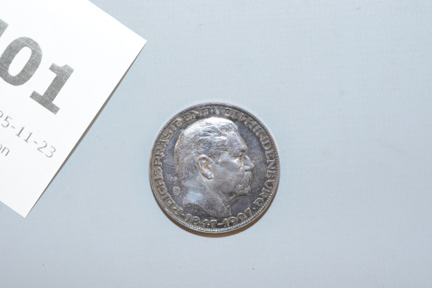 1401. Mynt silver Treuster Diener/ Paul von Hindenburg 5 reichsmark 1847-1927
