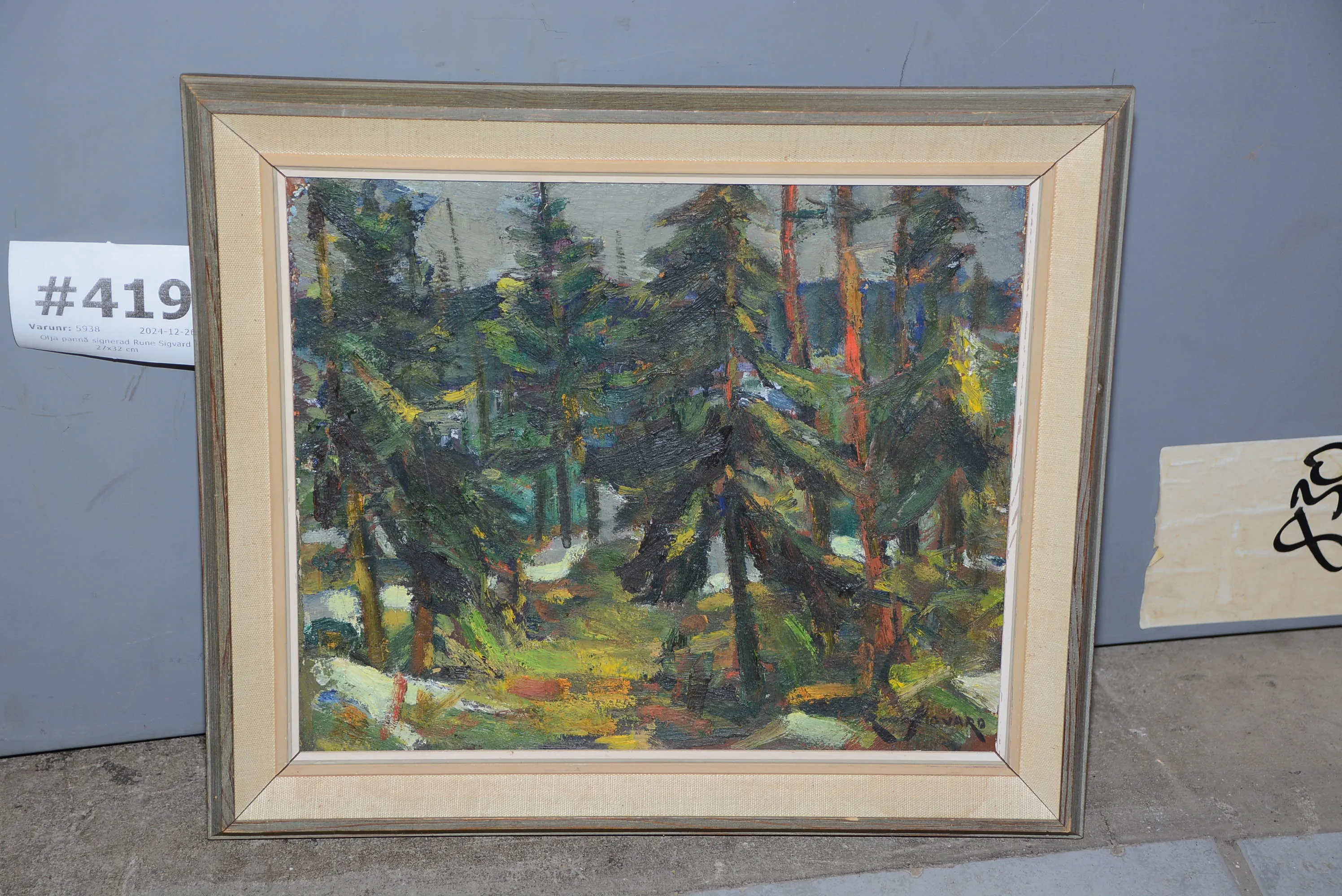 419. Olja pannå signerad Rune Sigvard 27x32 cm