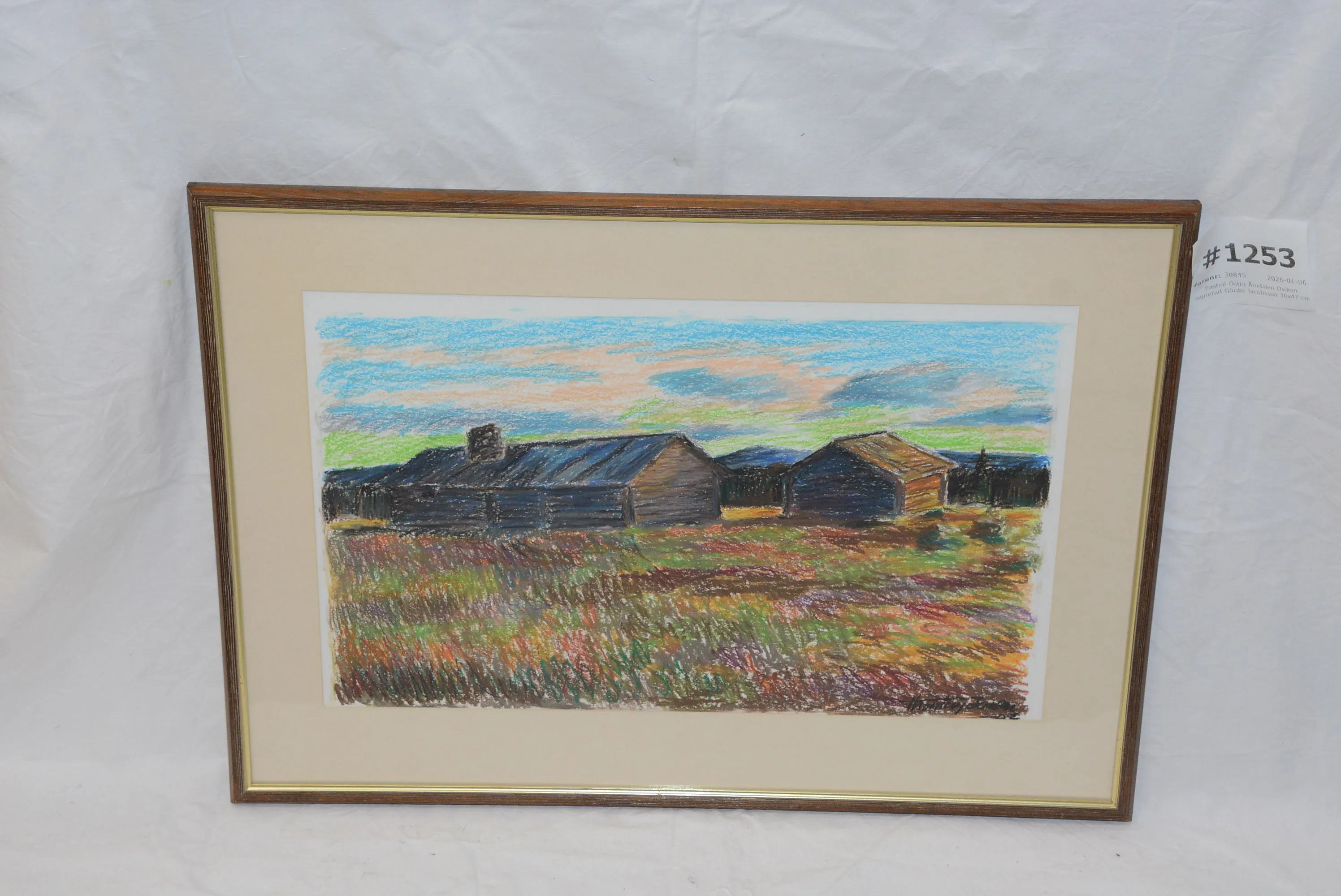 1253. Pastell östra Galåbuan Oviken signerad Torsten Johansson 30x47 cm