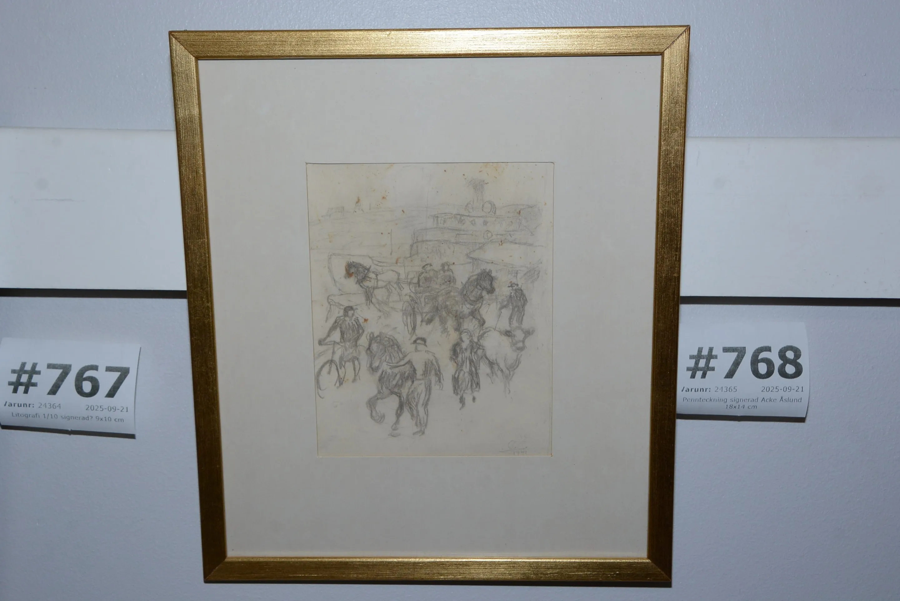 768. Pennteckning signerad Acke Åslund 18x14 cm