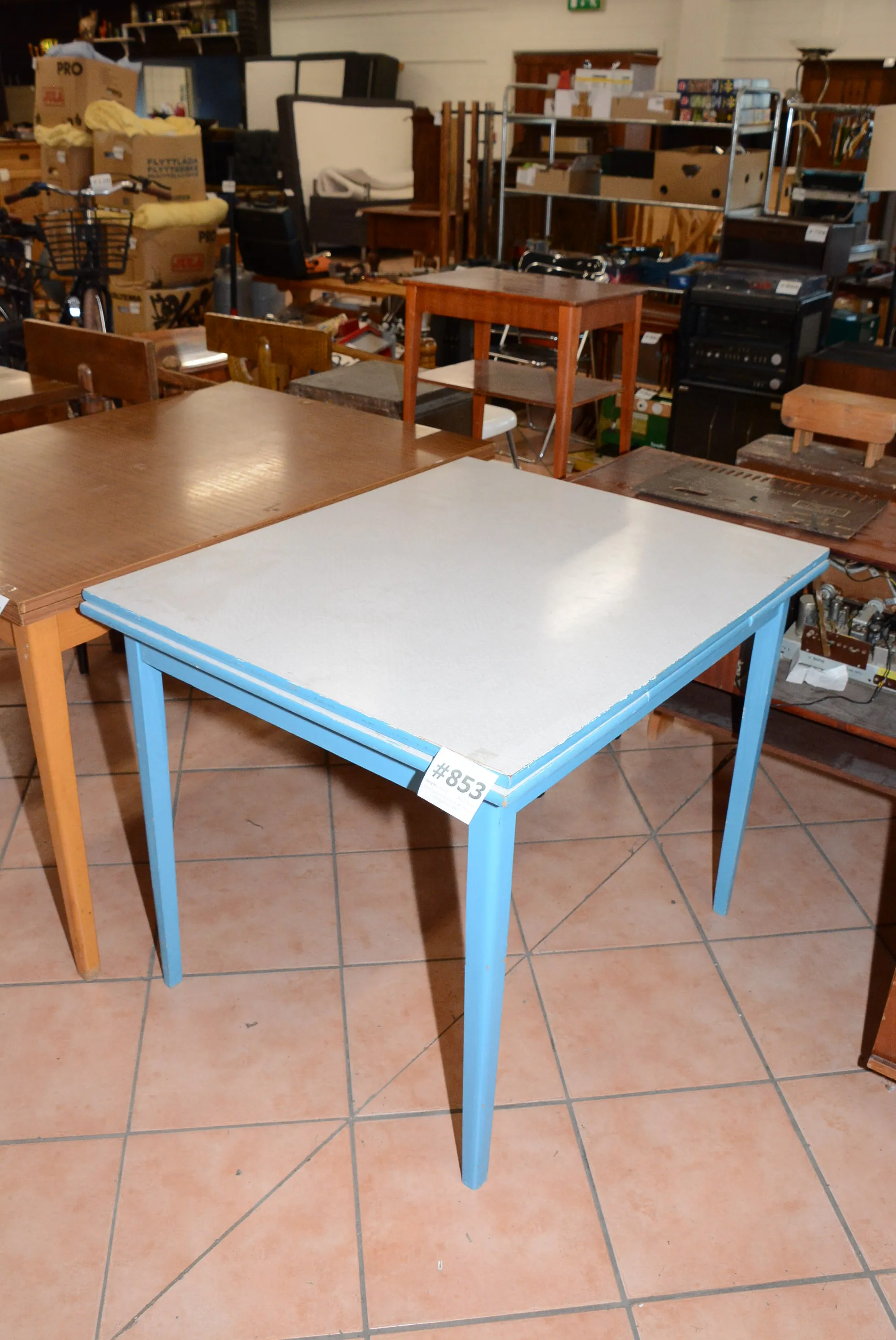 853. Perstorpsbord 90x75 cm, H: 75 cm, utdragsskivor 30x2