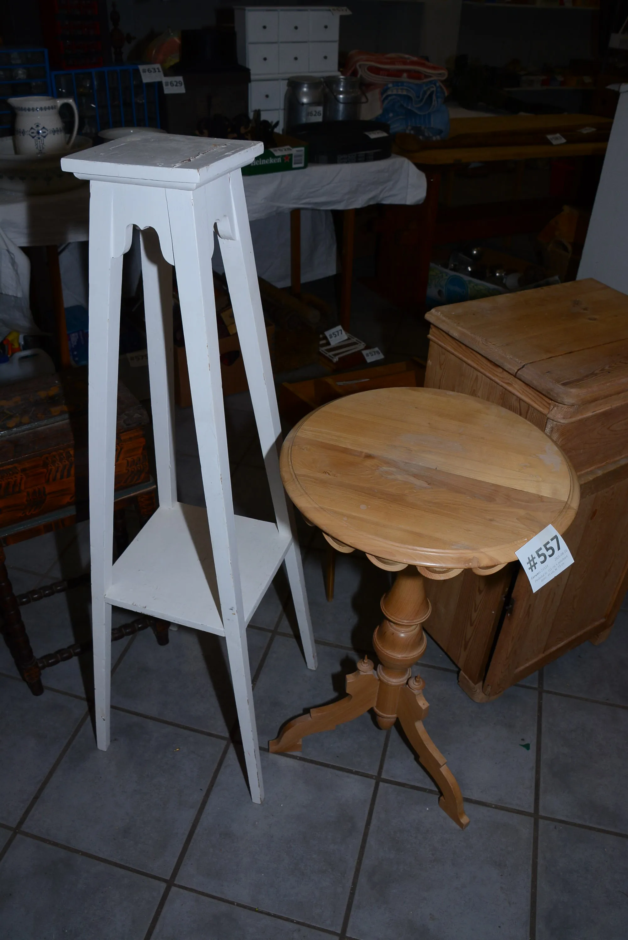 557. Piedestal H: 115 cm + pelarbord diam: 45 cm, H: 73 cm