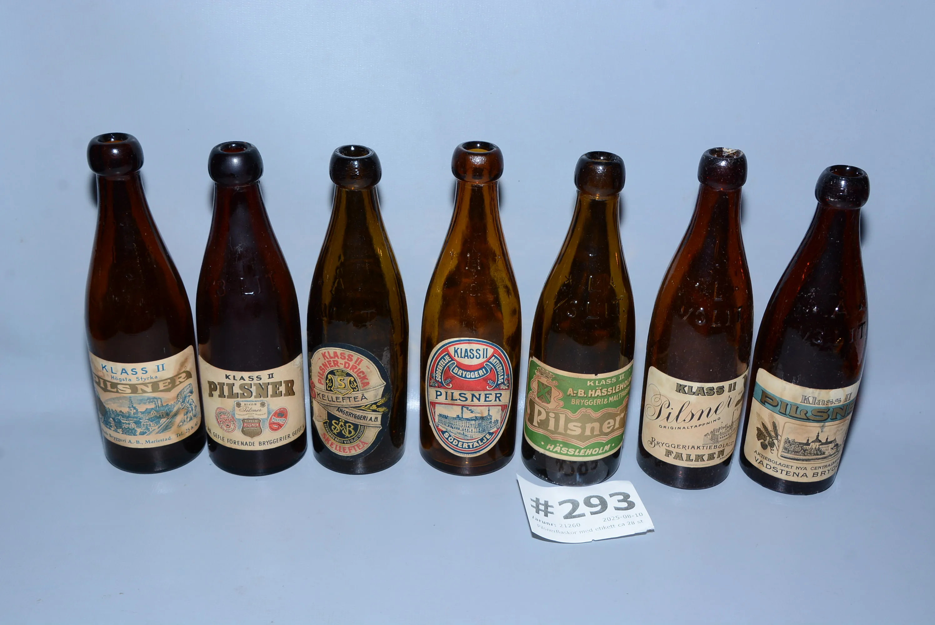 293. Pilsnerflaskor med etikett ca 28 st