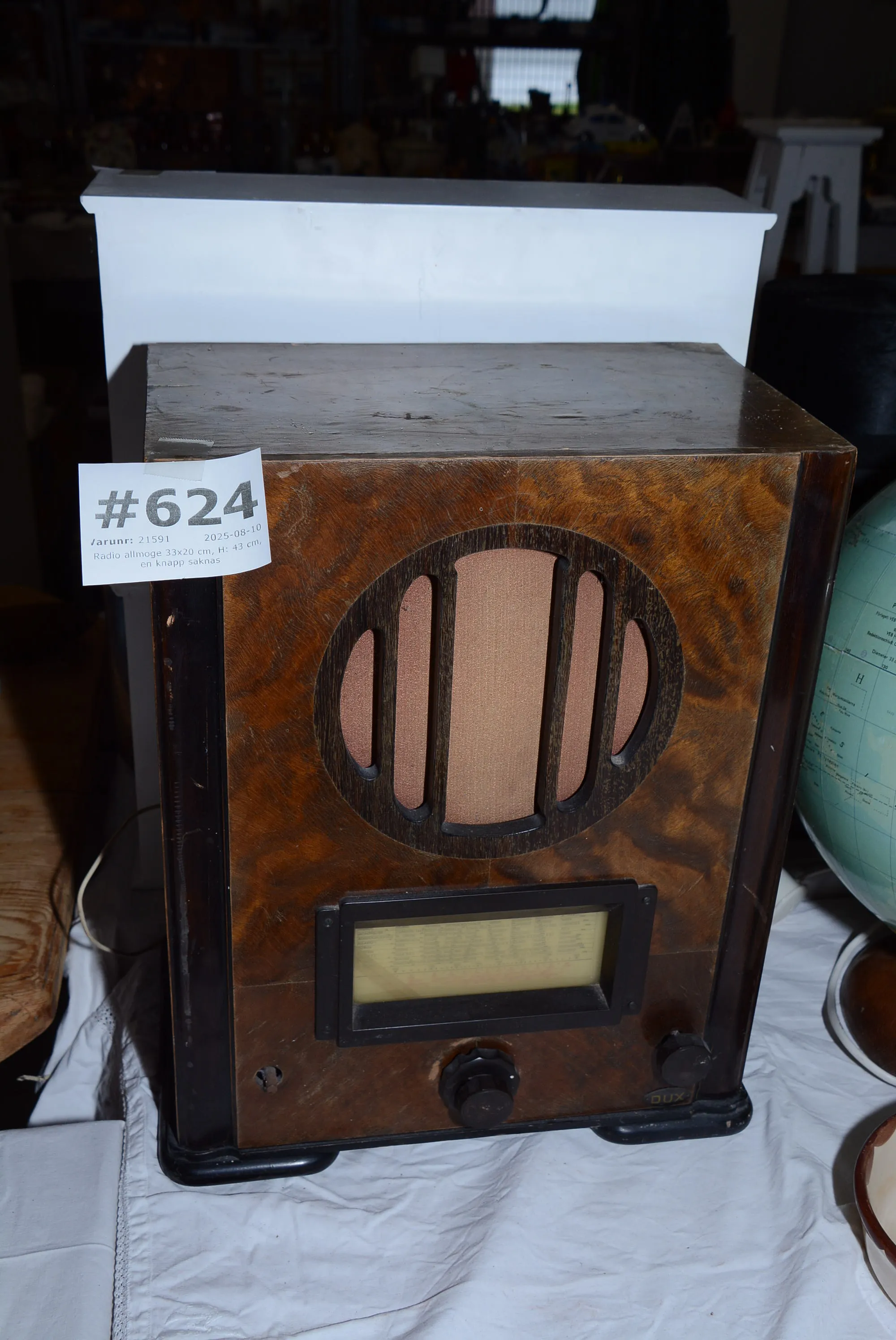 624. Radio allmoge 33x20 cm, H: 43 cm, en knapp saknas