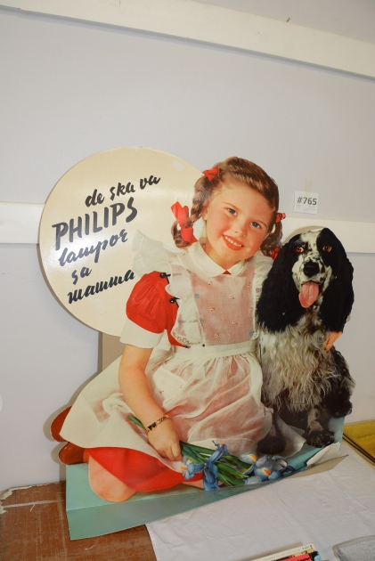 765. Reklamskylt papp "de ska va PHILIPS lampor sa mamma" 85x80 cm