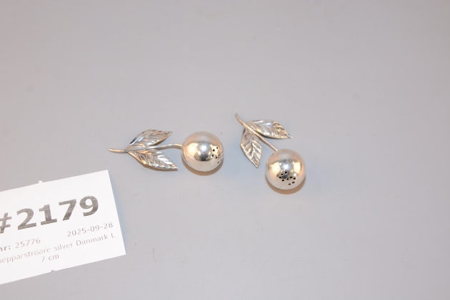 2179. Salt-/pepparströare silver Danmark L: 7 cm