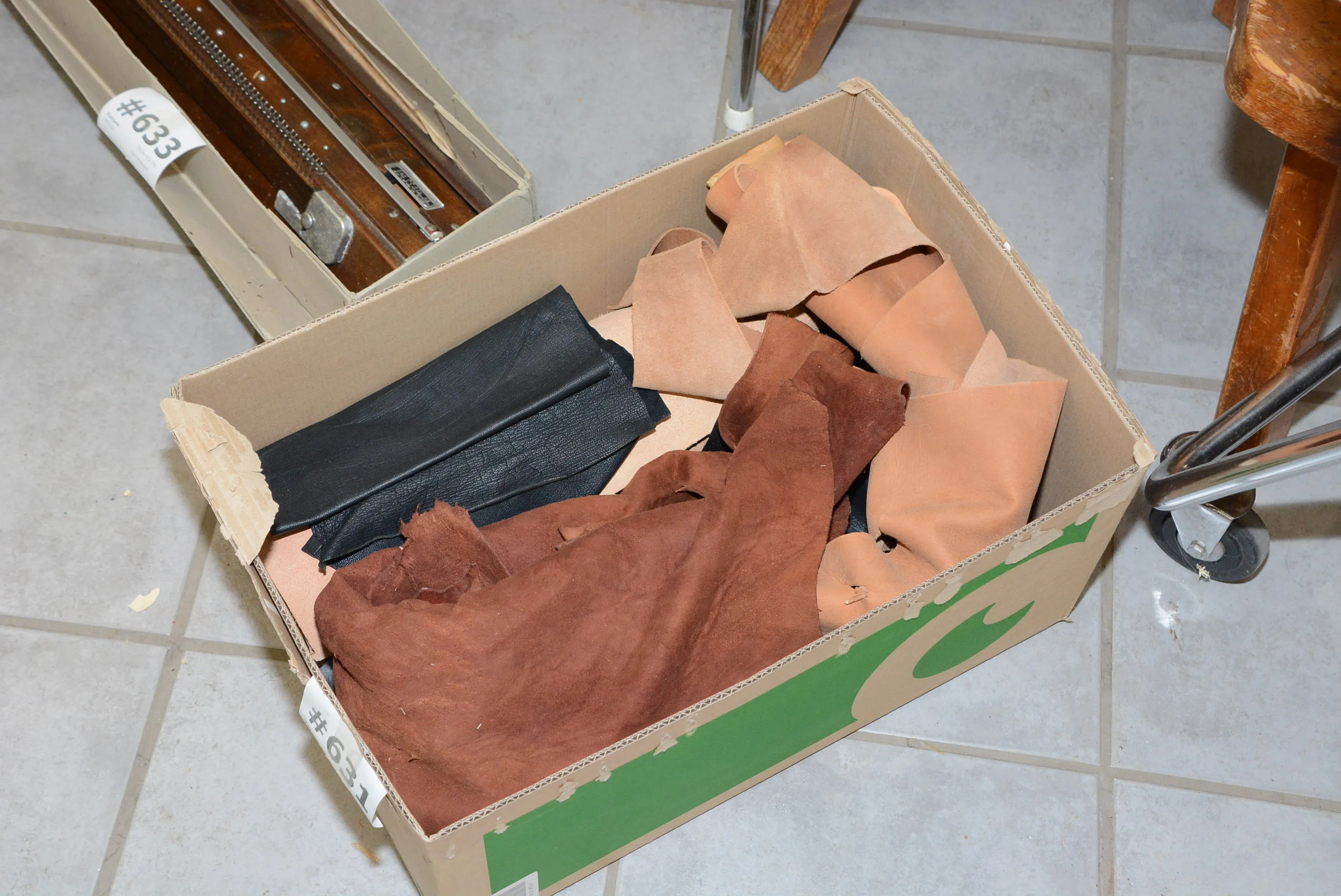 631. Skinn, läder parti