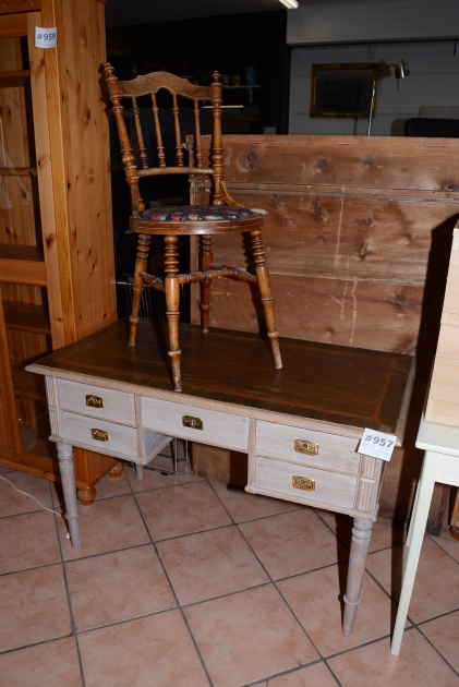 957. Skrivbord 5-lådig med svarvade ben 110x60 cm, H: 75 cm + caféstol H: 90 cm