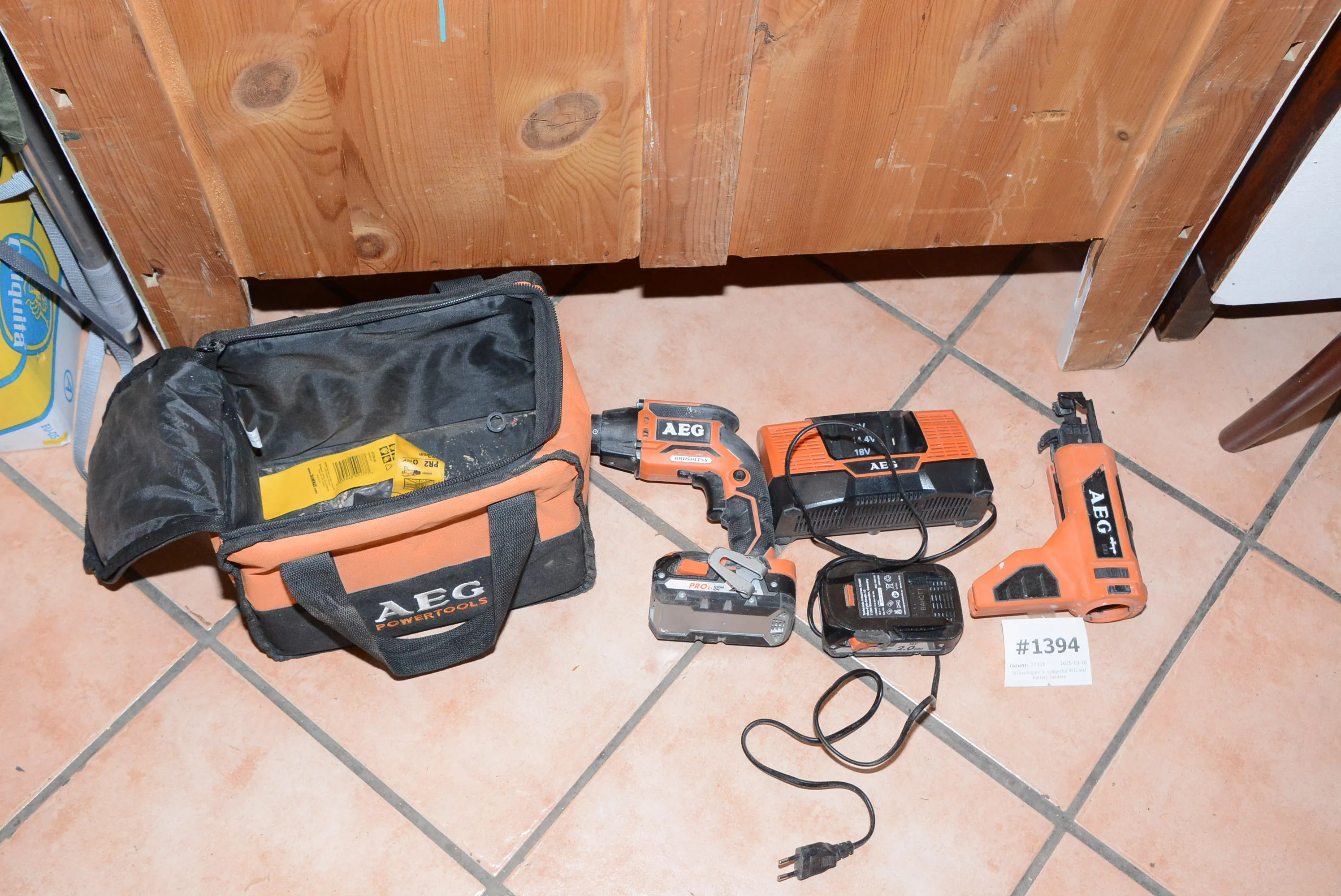 1394. Skruvdragare + skruvautomat AEG inkl batteri, laddare