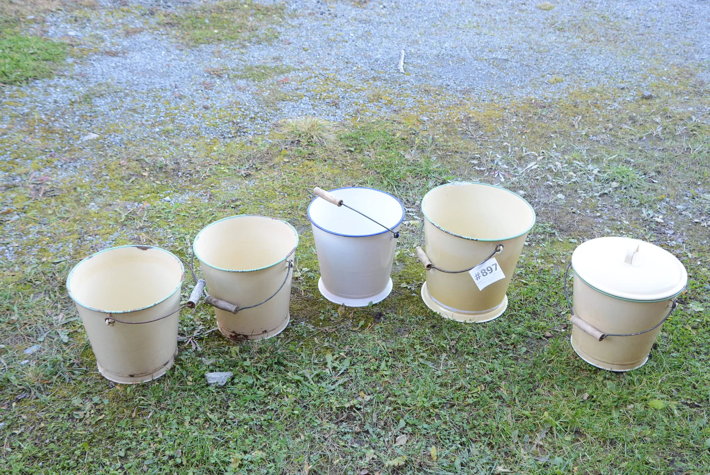 897. Slaskhinkar 5 st Kockums emalj H: 25-30 cm