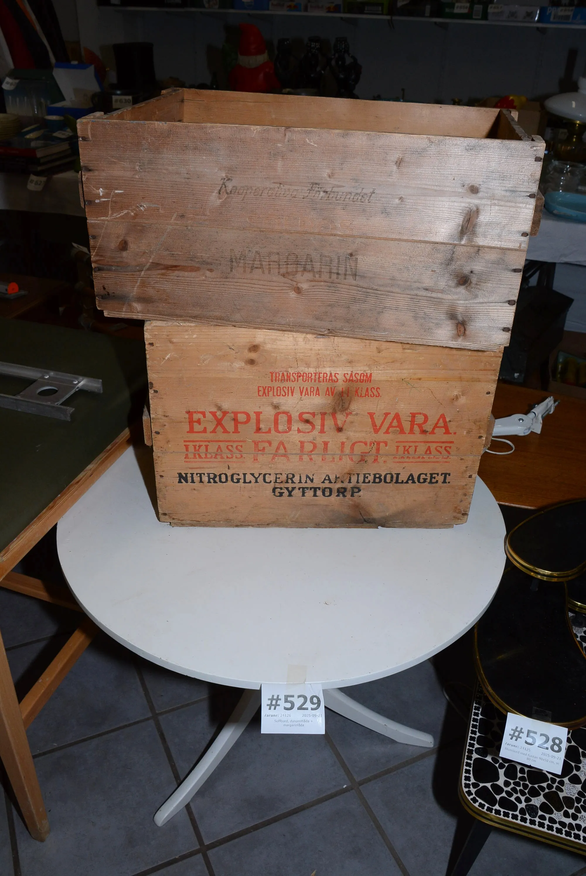 529. Soffbord, dynamitlåda + margarinlåda