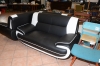 741. Soffgrupp läder 3-sits L: 185 cm, H: 90 cm, 2-sits L: 150 cm, H: 90 cm, fåtölj B: 115 cm, H: 90 cm + soffbord diam: 80 cm, H: 45 cm