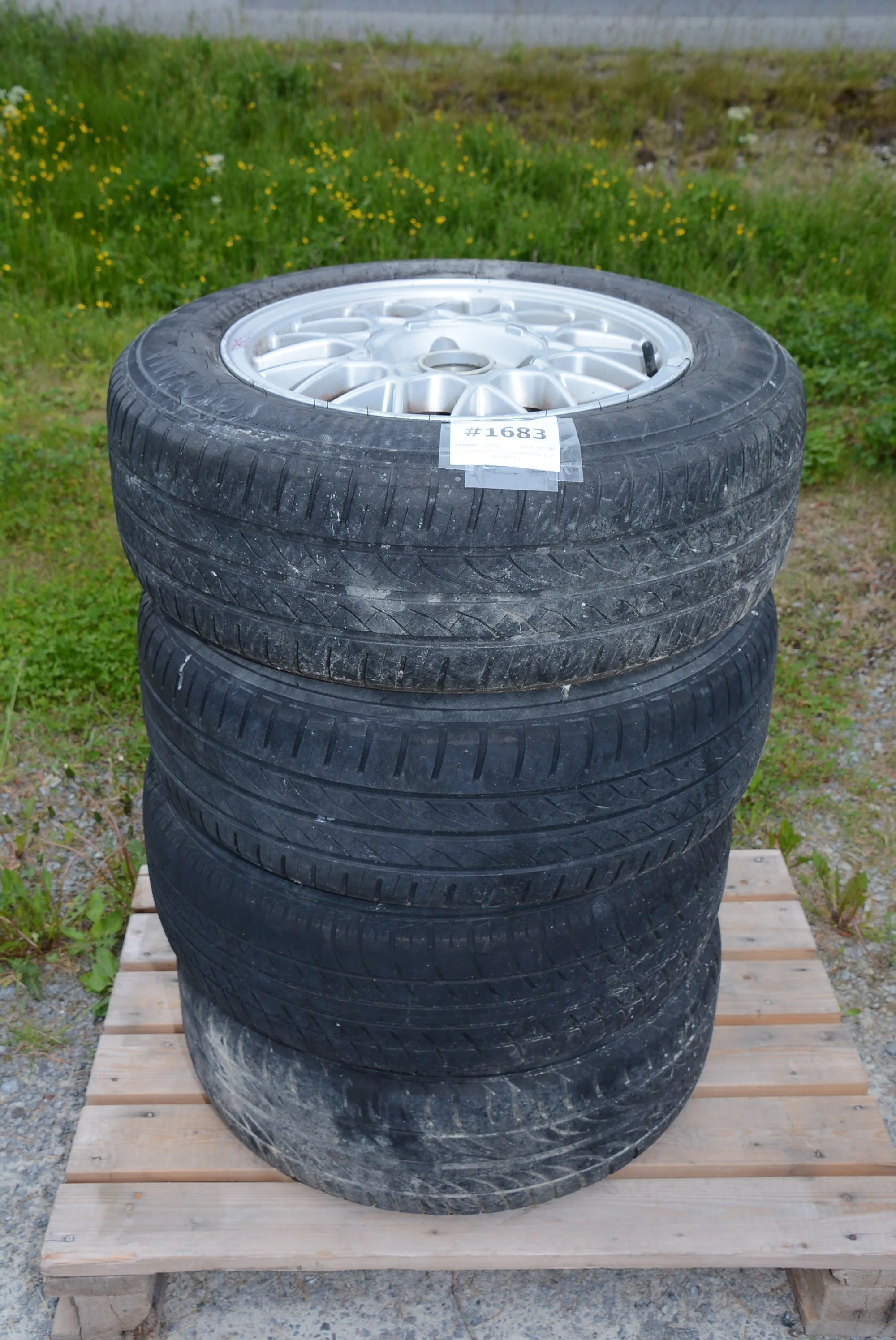 1683. Sommardäck på aluminiumfälg 4 st 195-16.15