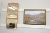 335. Spegel teak 85x37 cm + oljetryck 40x60 cm