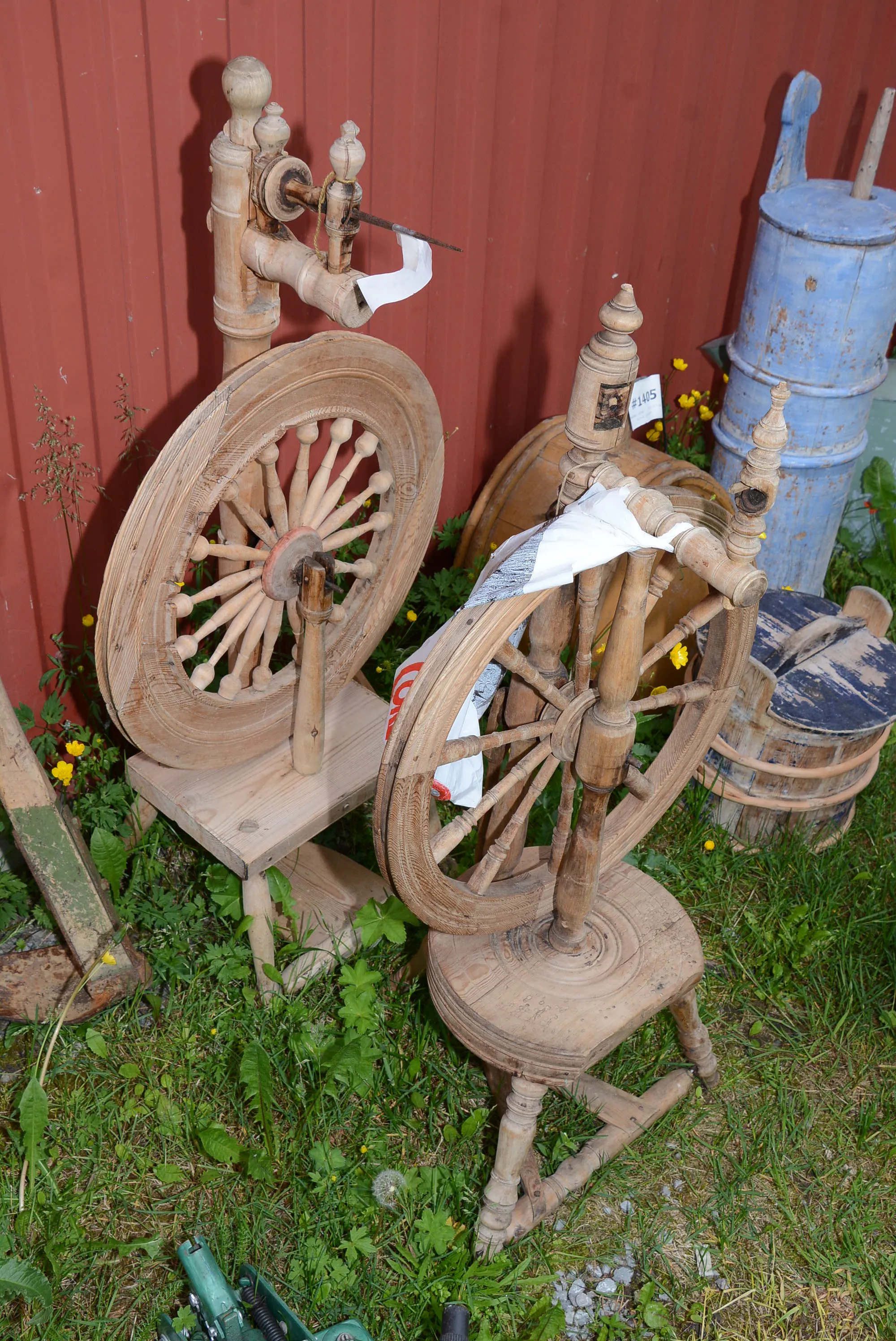 1407. Spinnrockar 2 st H: 100 cm