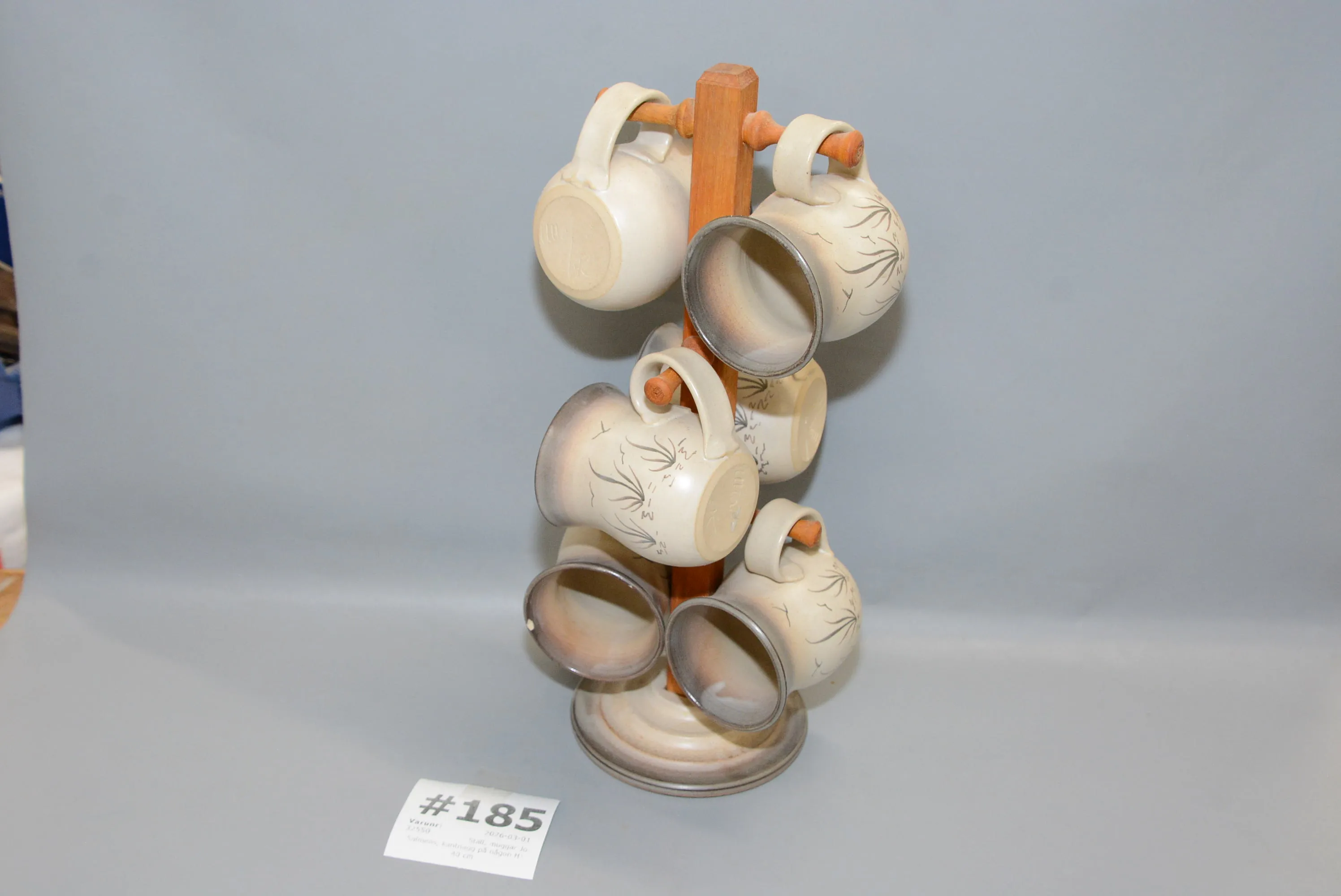 185. Ställ, muggar Jo Salmens, kantnagg på någon H: 40 cm