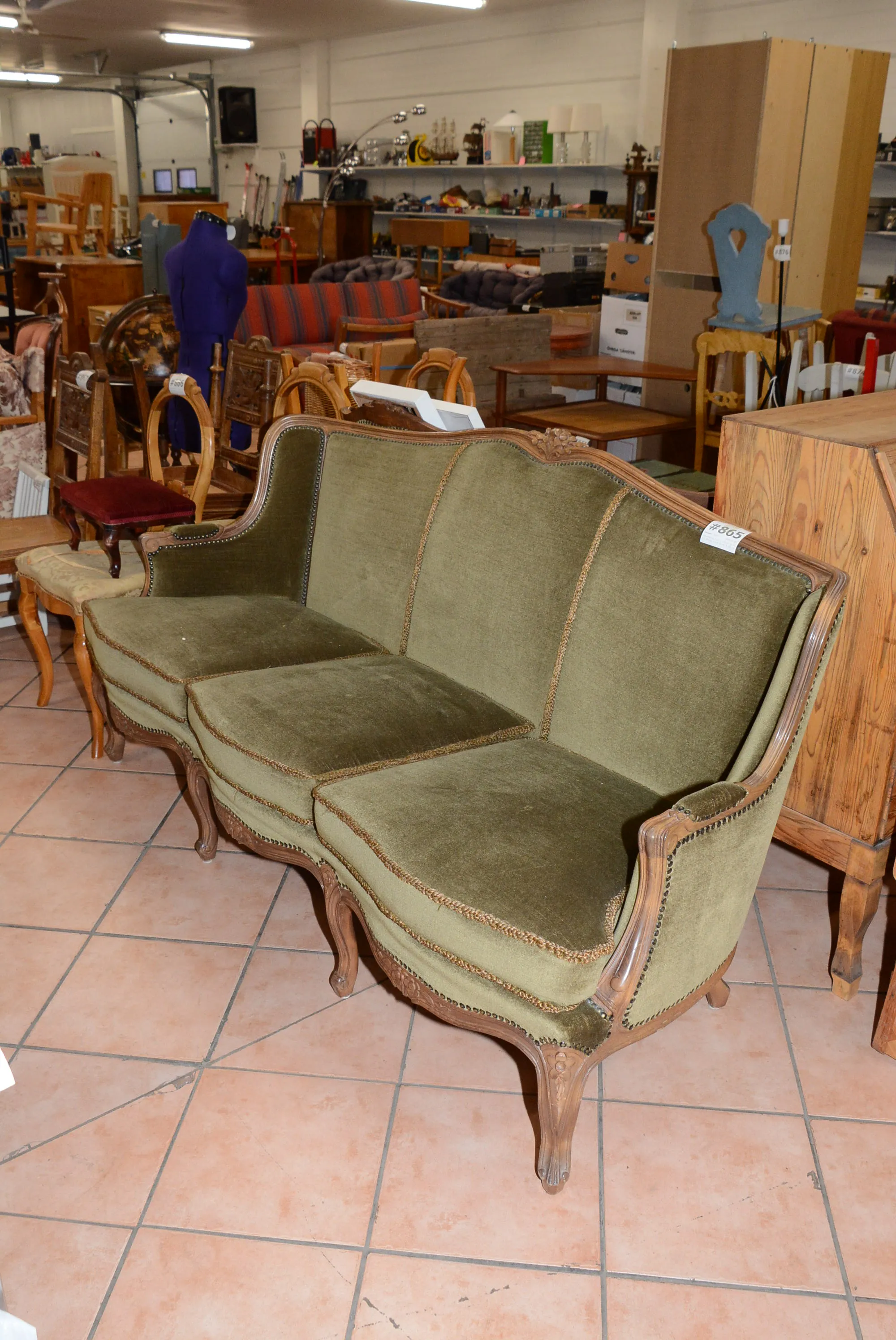 865. Stilsoffgrupp soffa 3-sits L: 175 cm, H: 93 cm, fåtöljer 2 st B: 65 cm, H: 93 cm