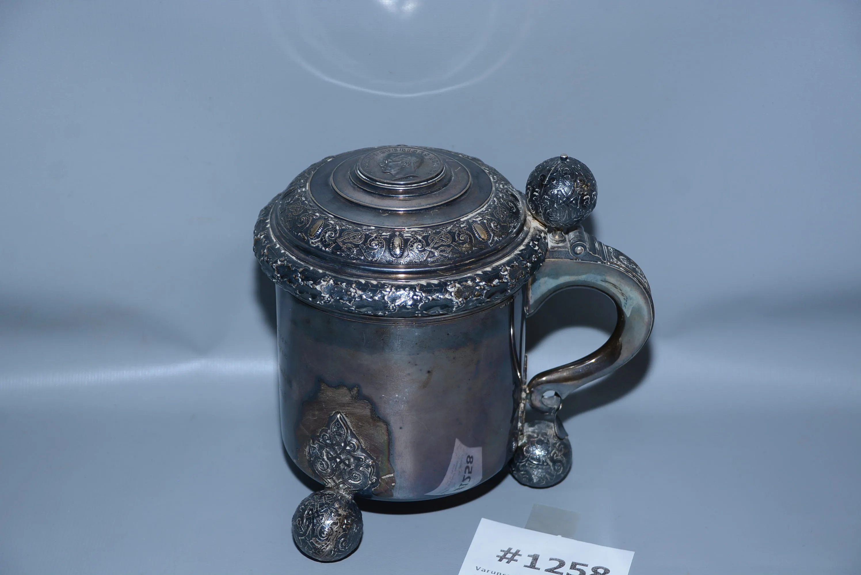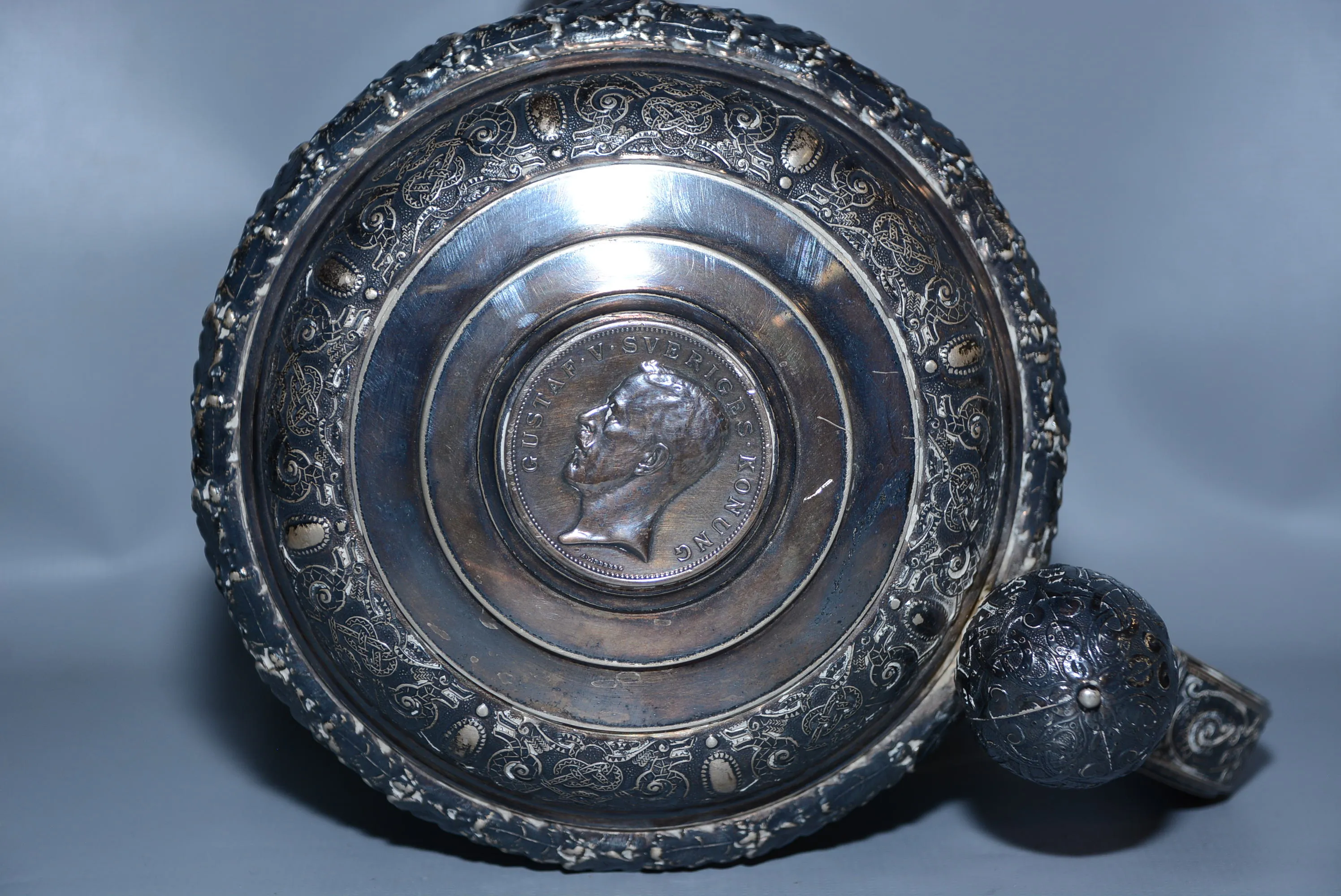 1258. Stop silver med mynt Gustaf V L: 20 cm, H: 19 cm