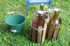 1135. Svagdricksflaskor 3 st + hink