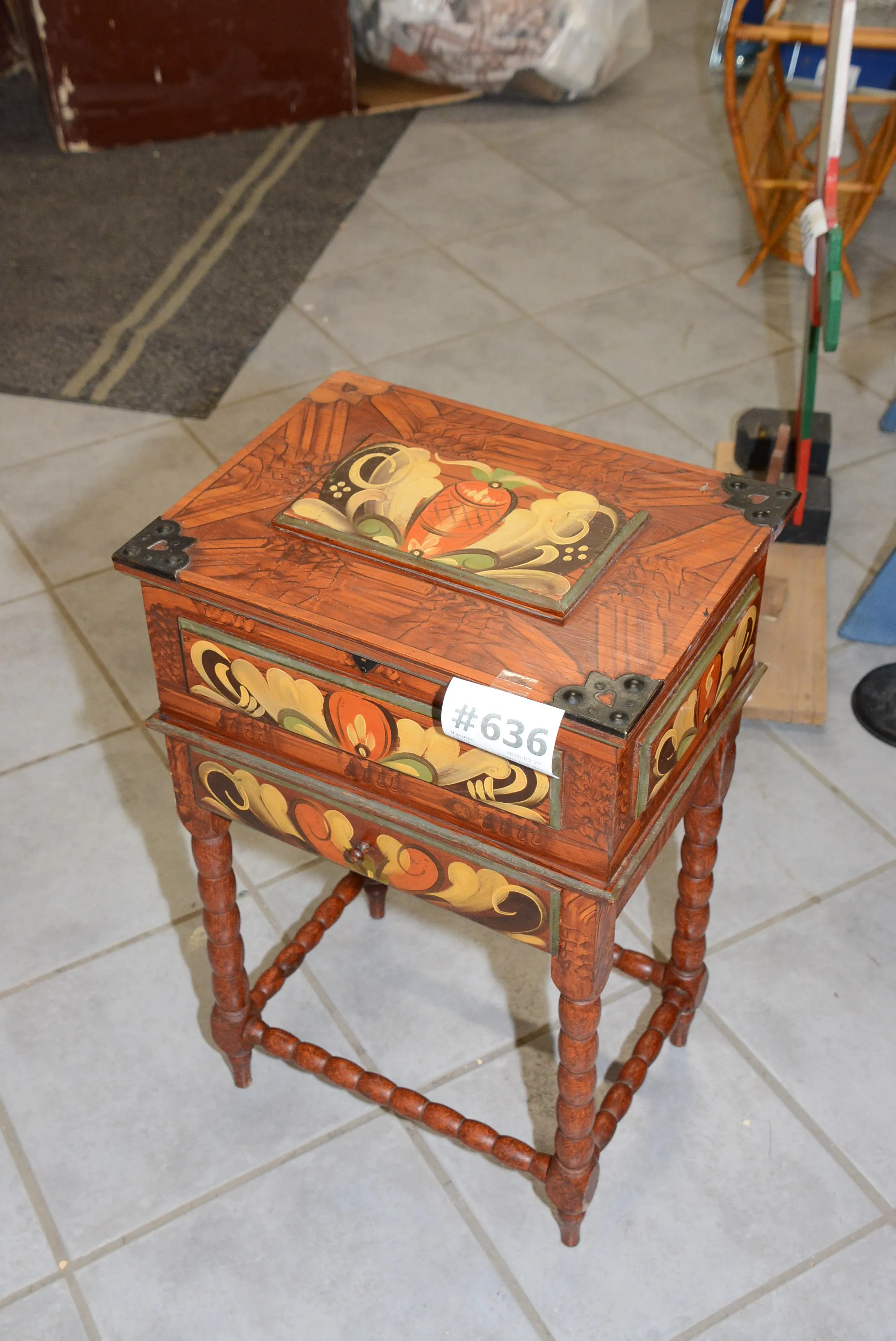 636. Syskrin med låda kurbitsmålad 40x30 cm, H: 60 cm