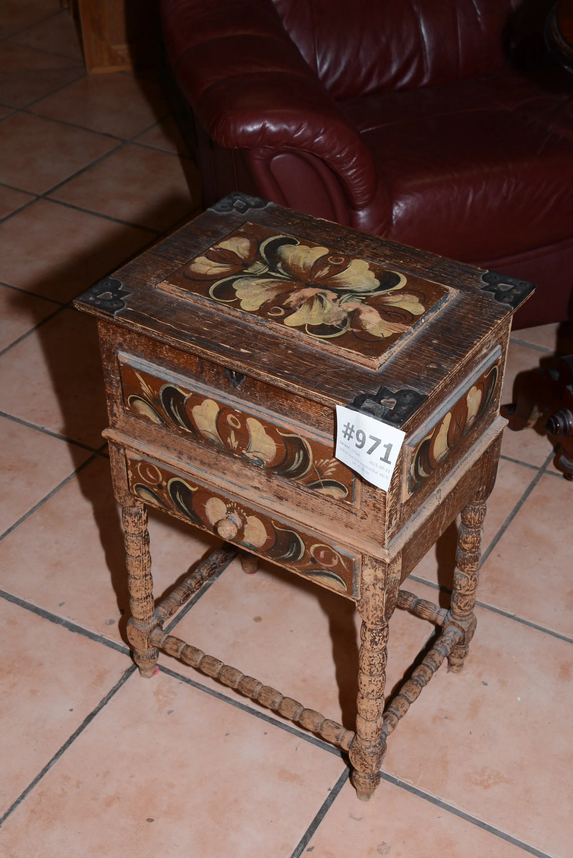 971. Syskrin med låda kurbitsmålat 40x30 cm, H: 60 cm