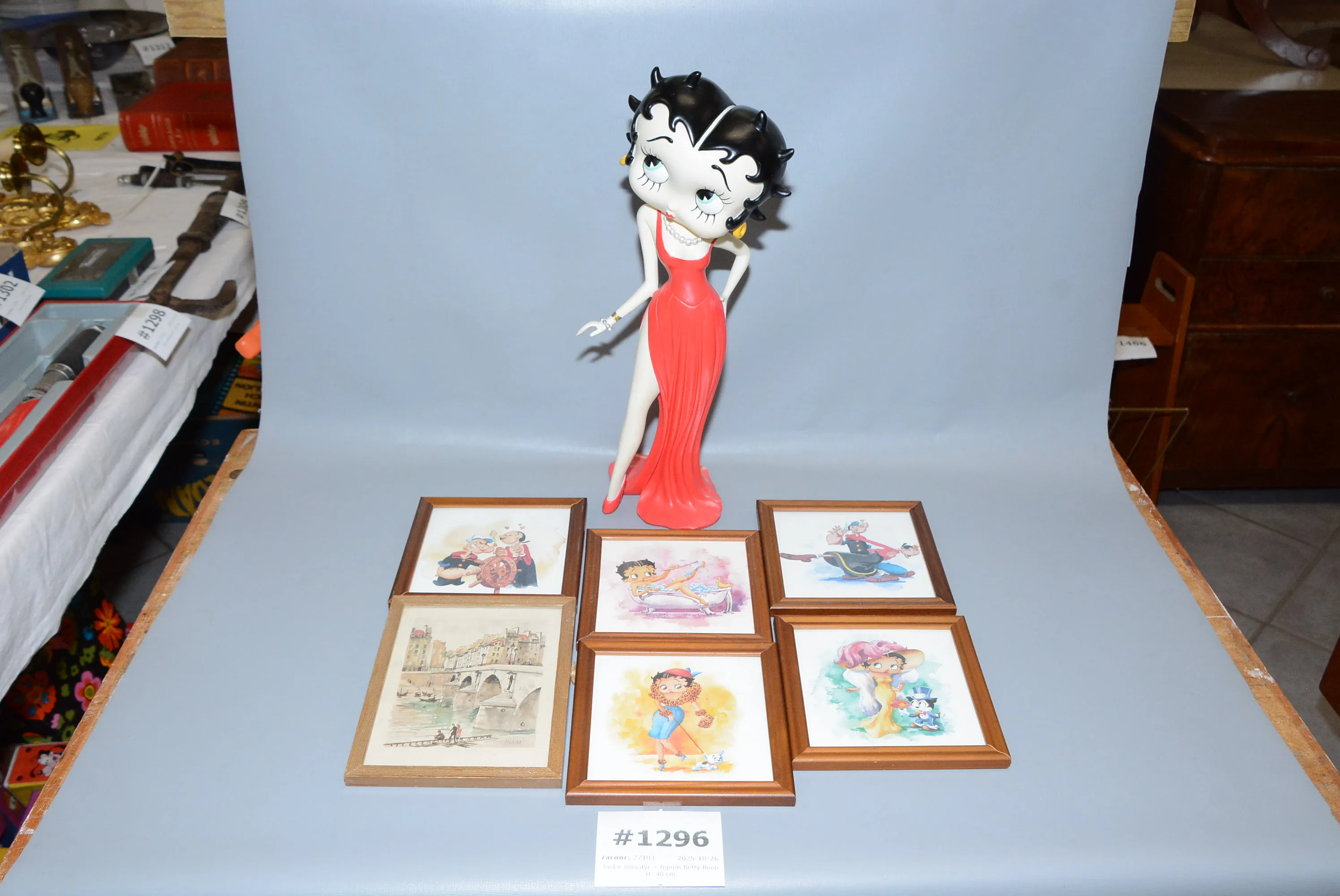 1296. Tavlor miniatyr + figurin Betty Boop H: 40 cm, limmad