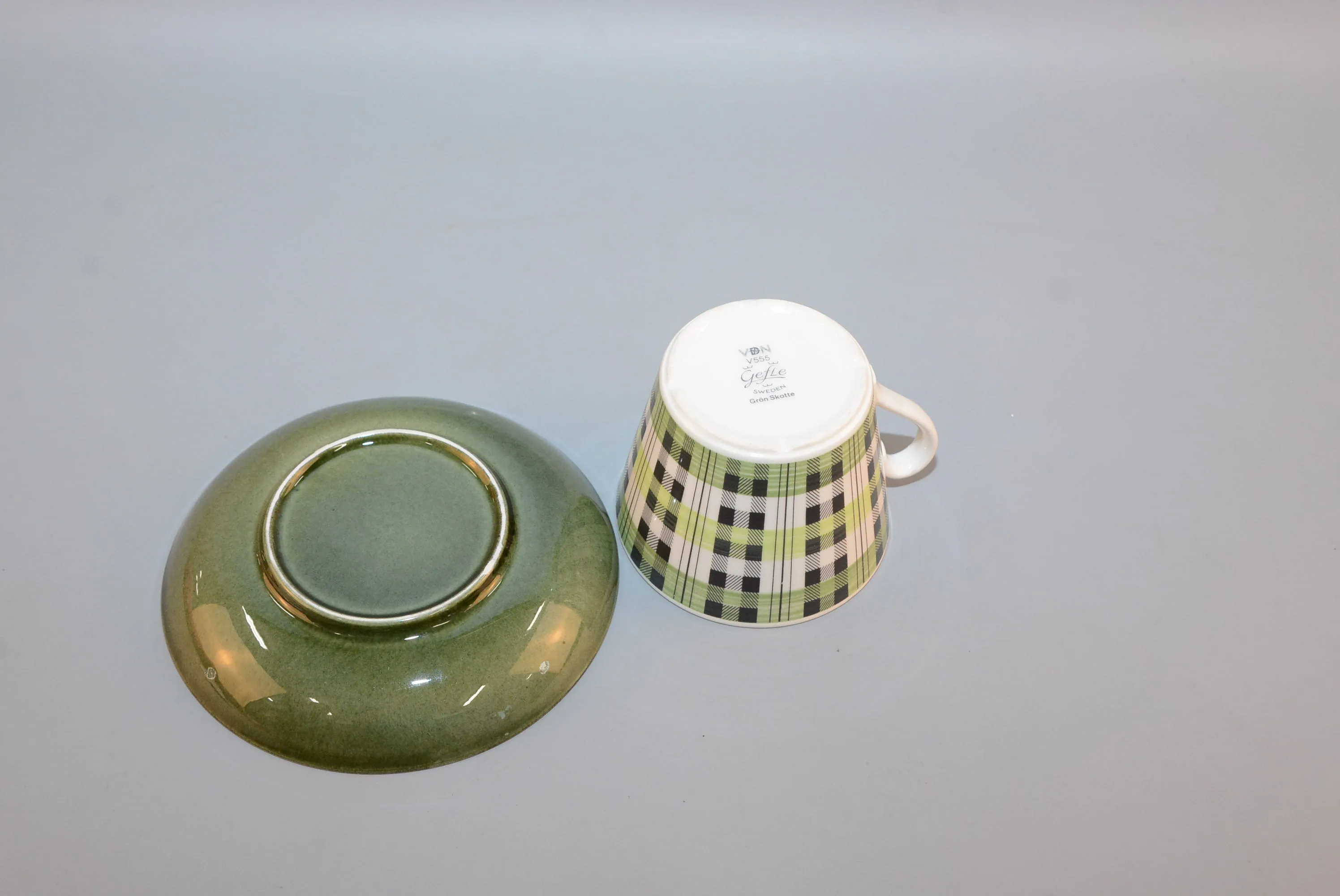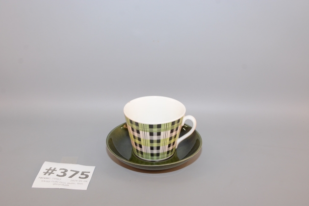 375. Tekopp "Grön Skotte" Gefle, liten glasyrskada