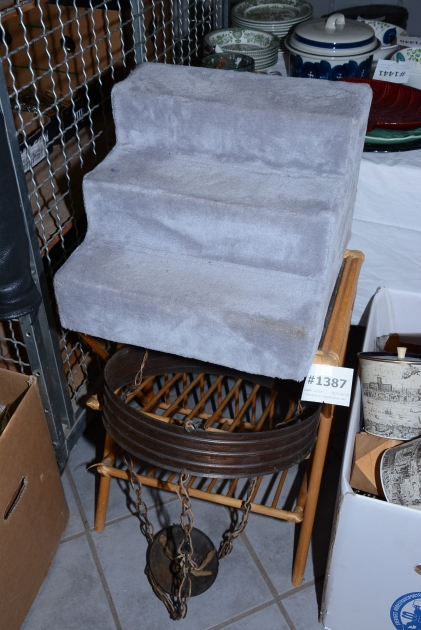 1387. Tidningsbord, kopparlampa mm